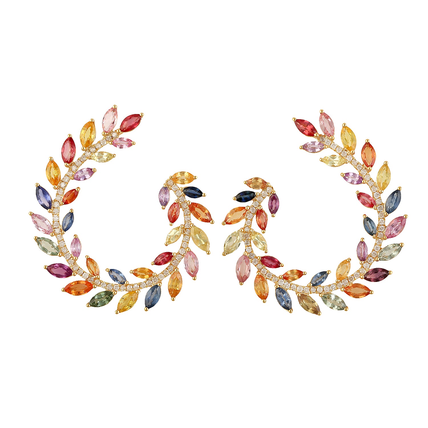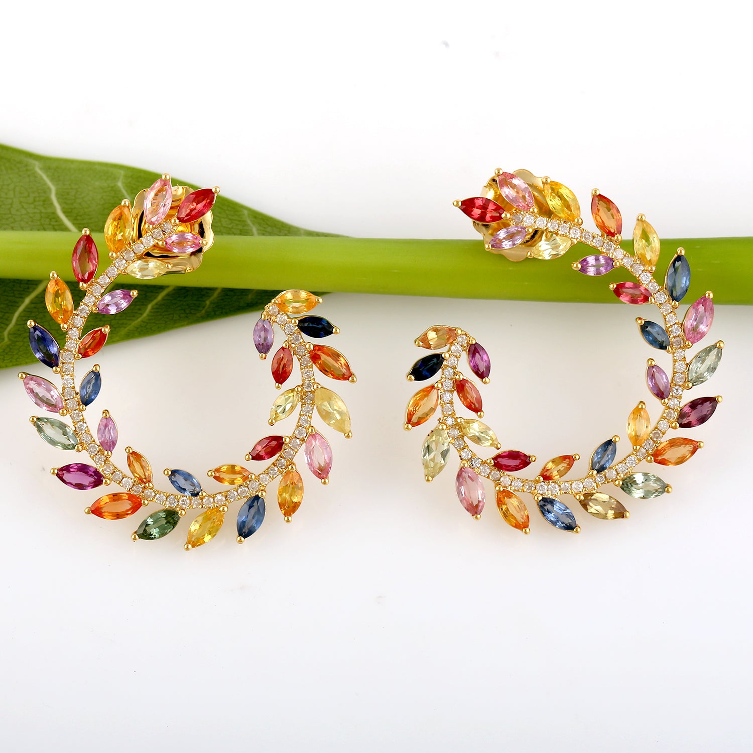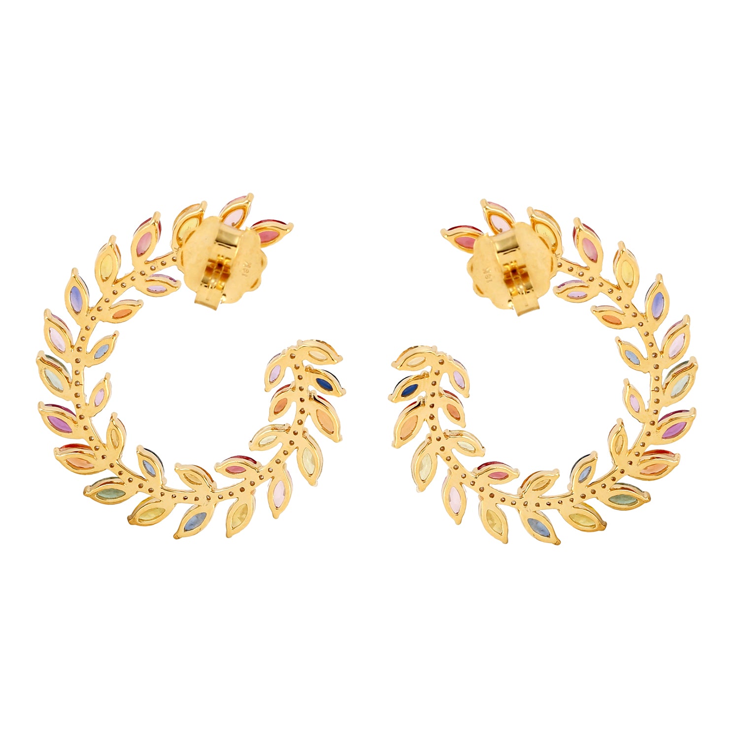 Marquise Multicolor Sapphire Pave Diamond Open Hoop Earrings In Gold