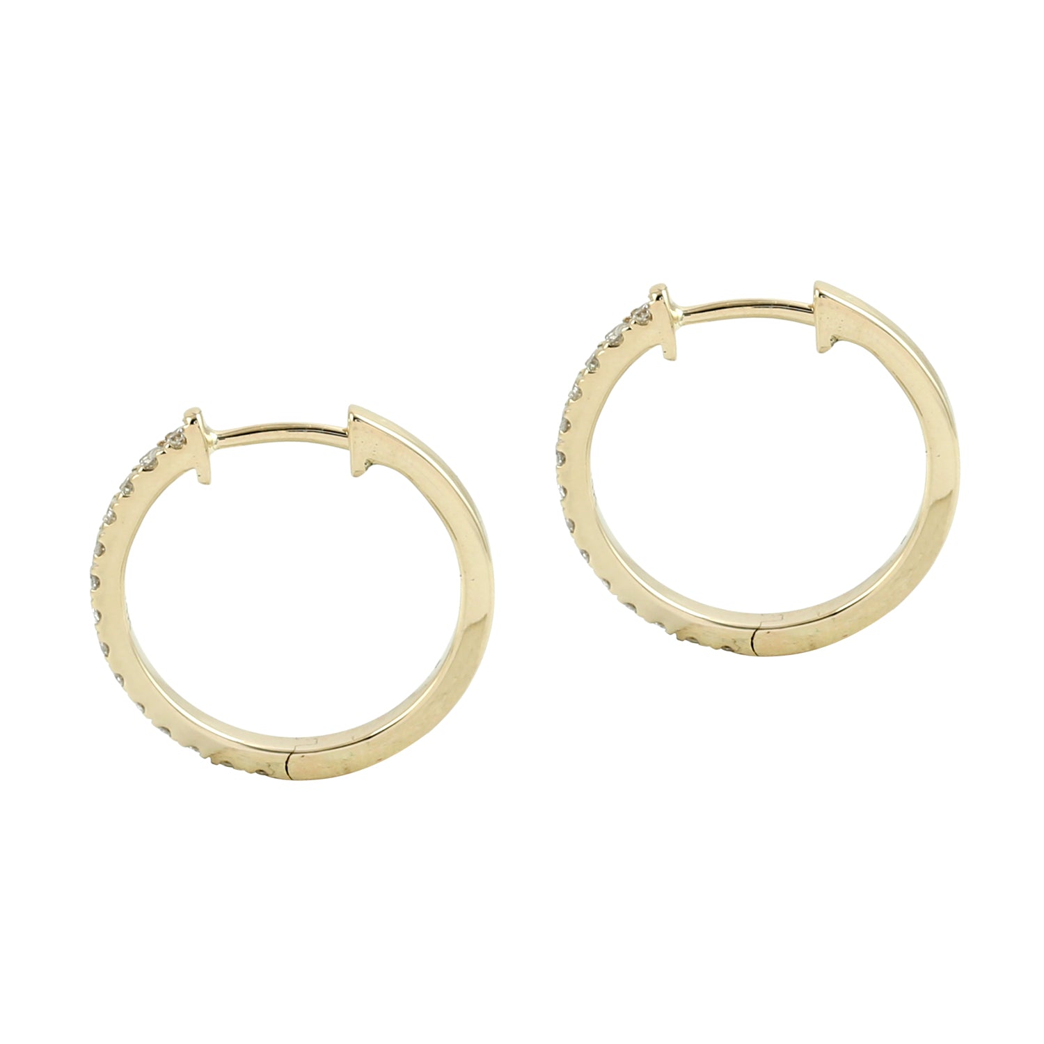 Natural Diamond Pave Hoop Earrings in 14K Yellow Gold