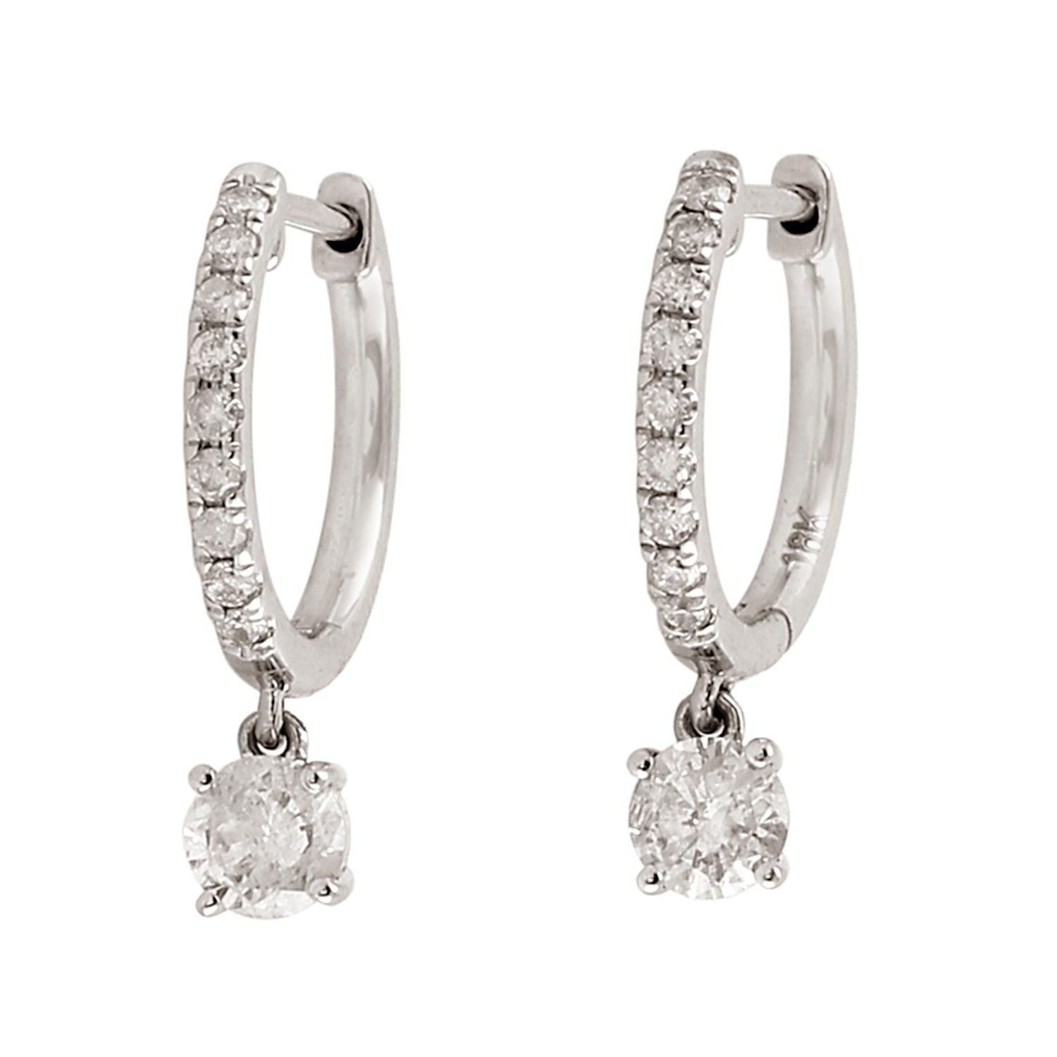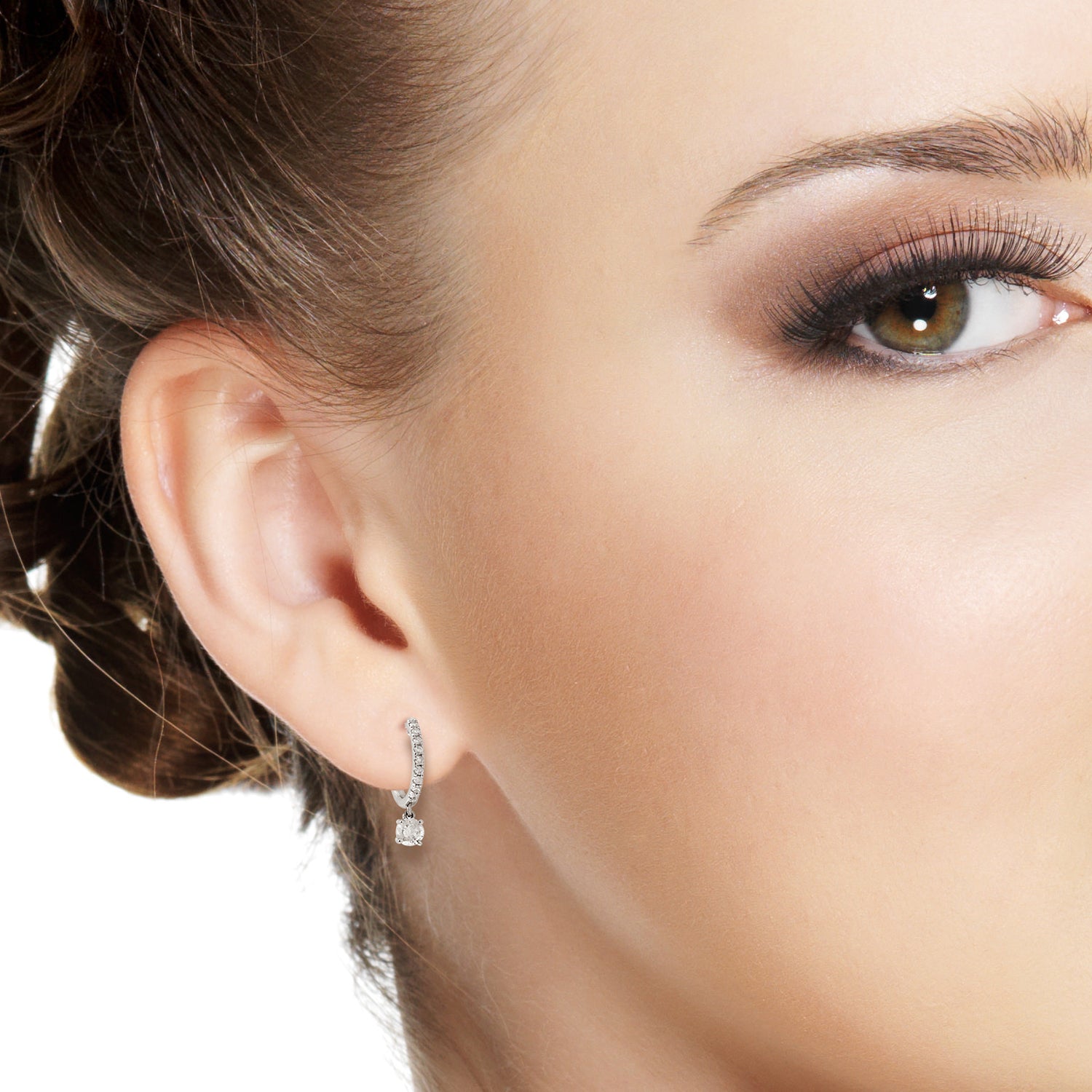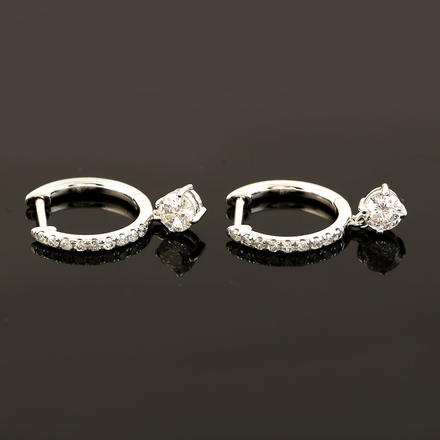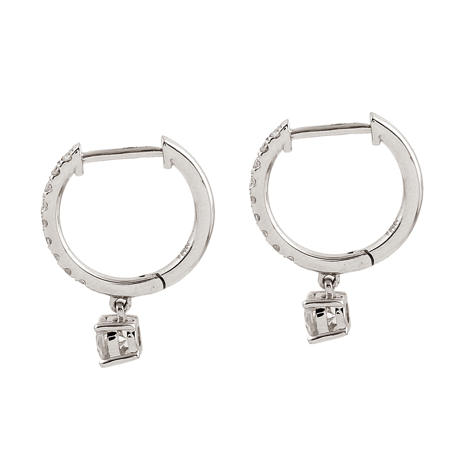 Natural Diamond Pave Latch Back Vega Hoop Earrings In 18K White Gold