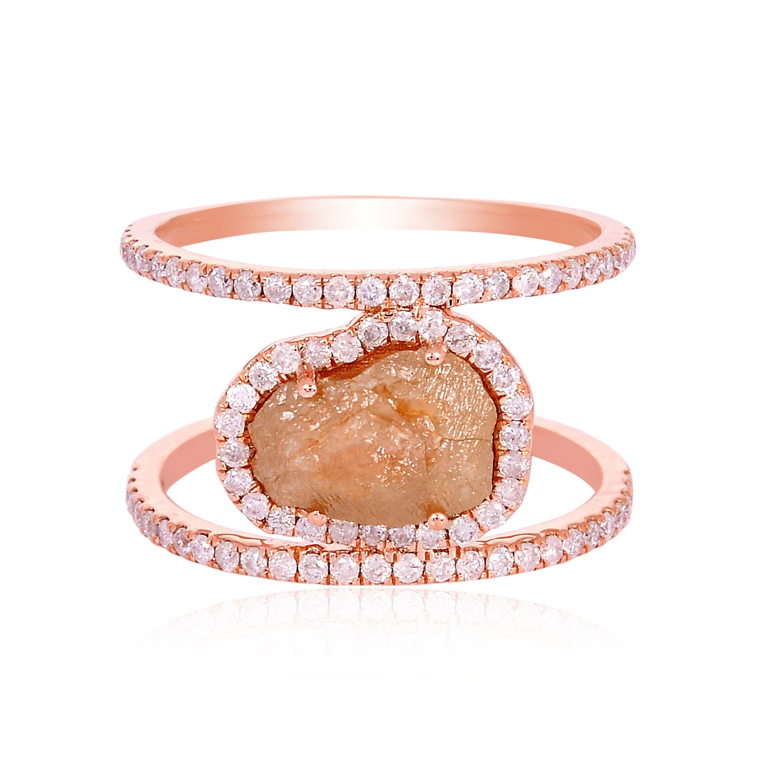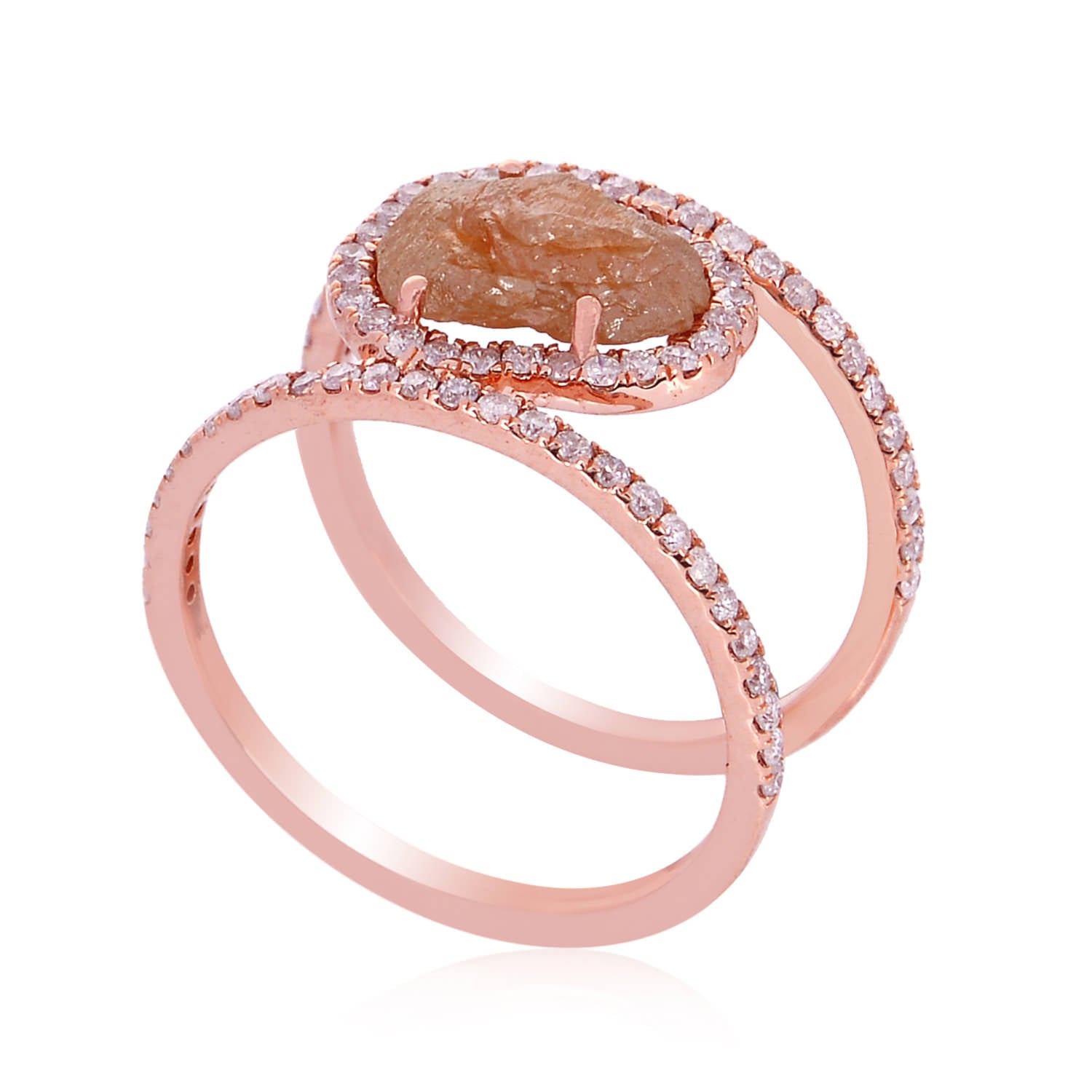 18K Rose Gold Uneven Ice Diamond Handmade Elegant Ring For Women's