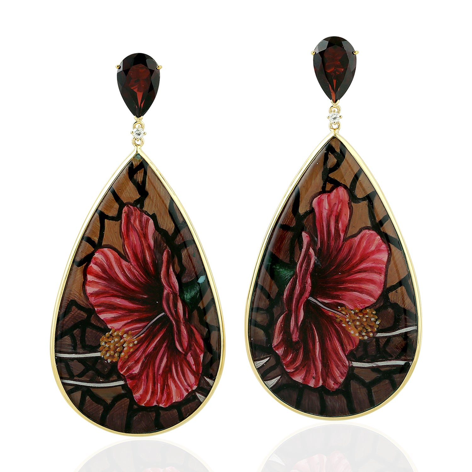 Pear Cut Garnet Prong Diamond Picture Bakelite Dangler In Yellow Gold