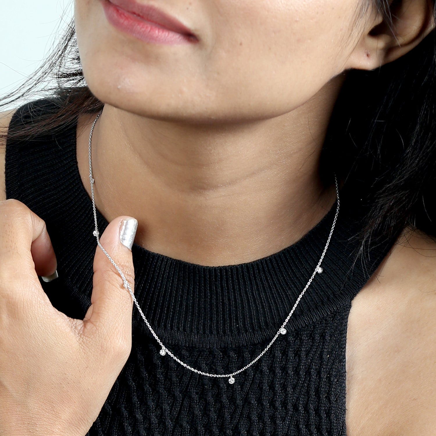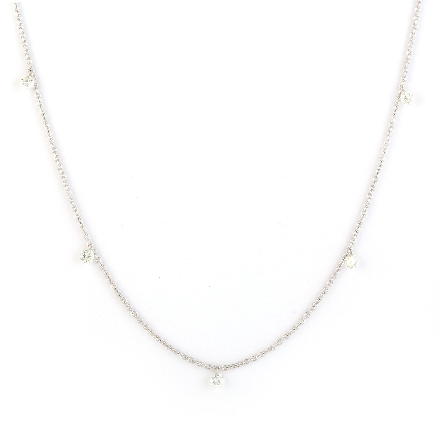 Diamond Station Chain Necklace in 18K White Gold