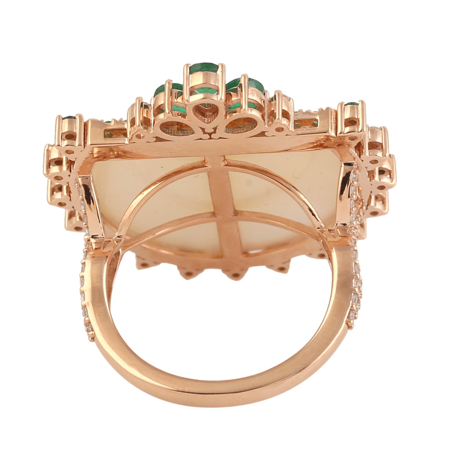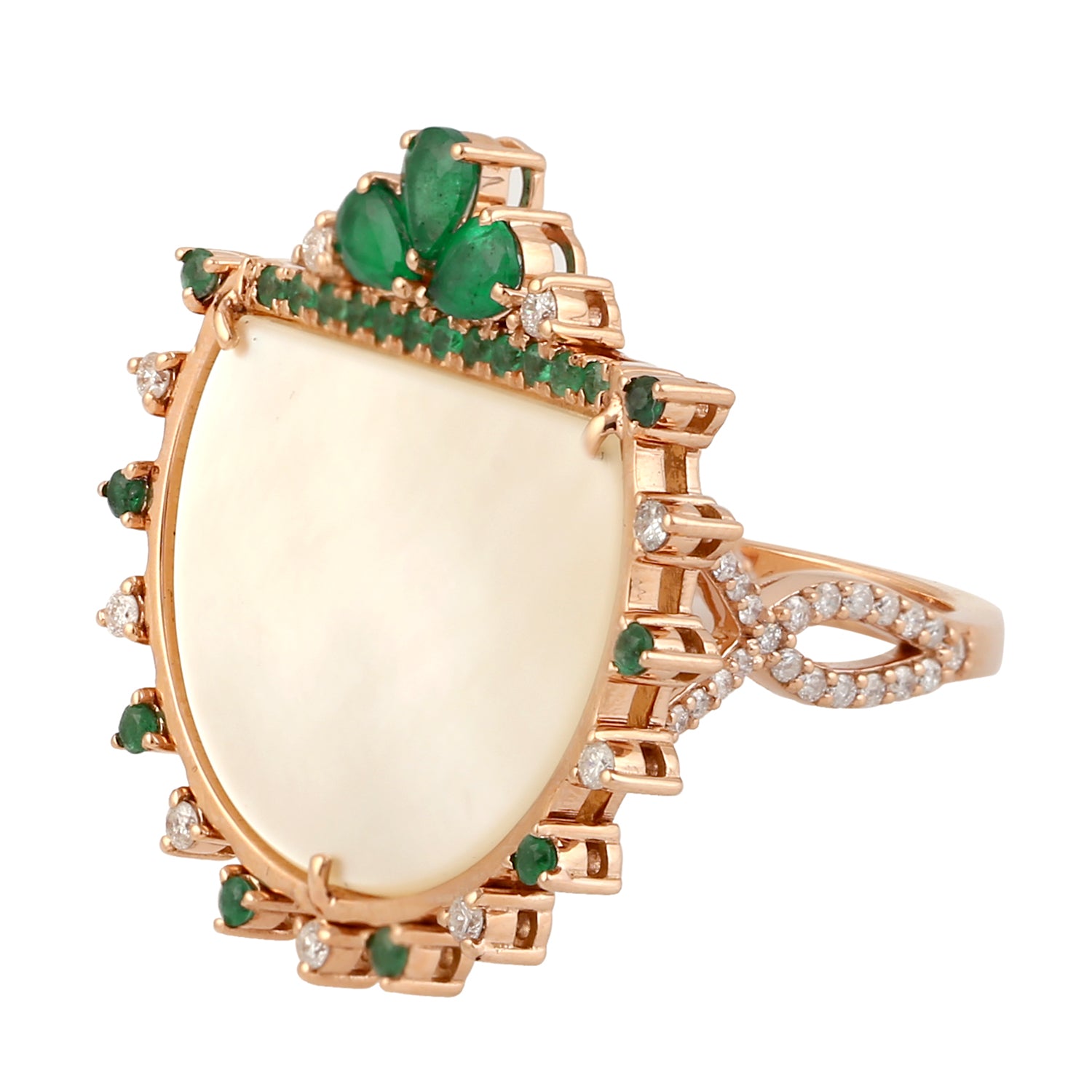 18k Rose Gold D Cut MOP Pear Emerald Pave Diamond Cocktail Ring