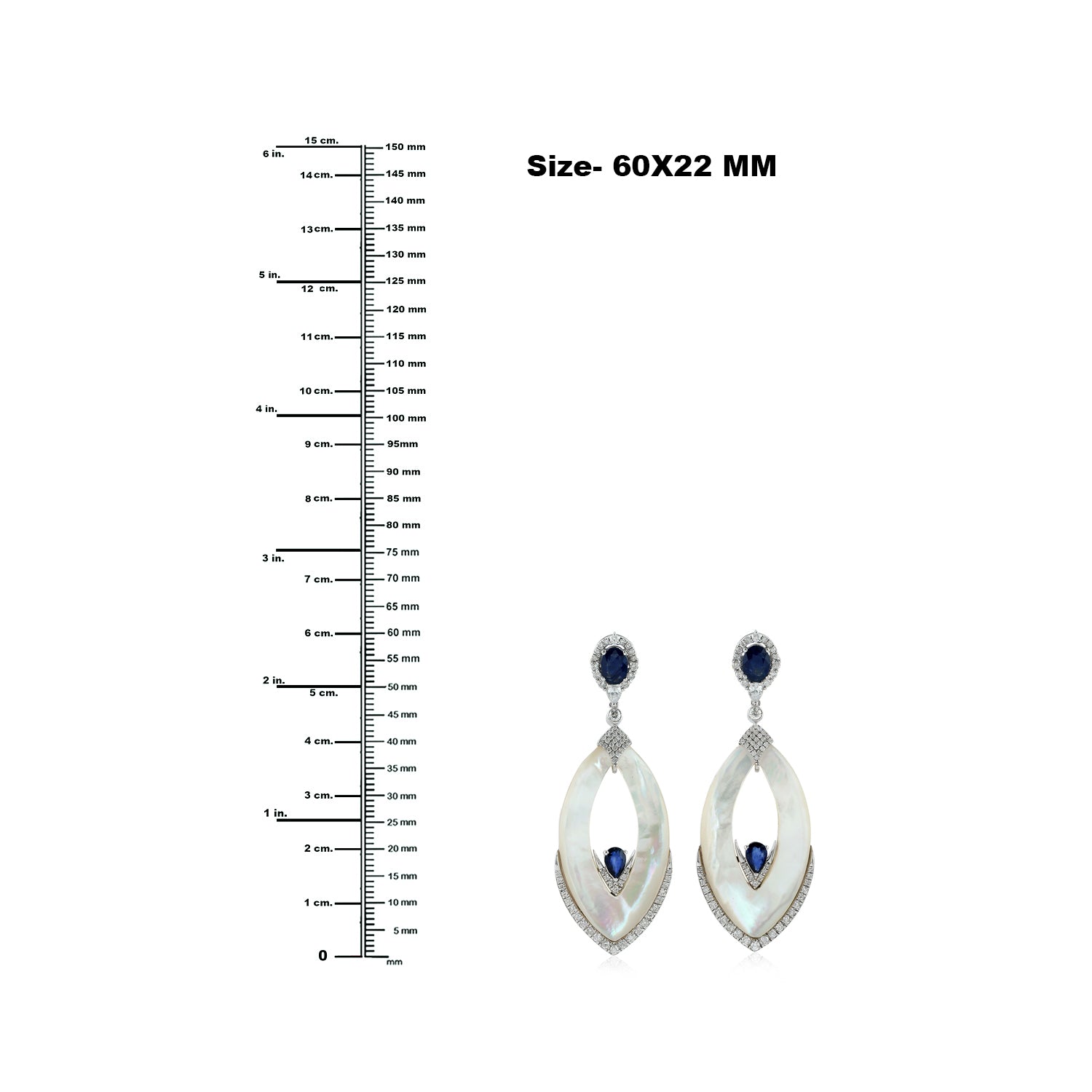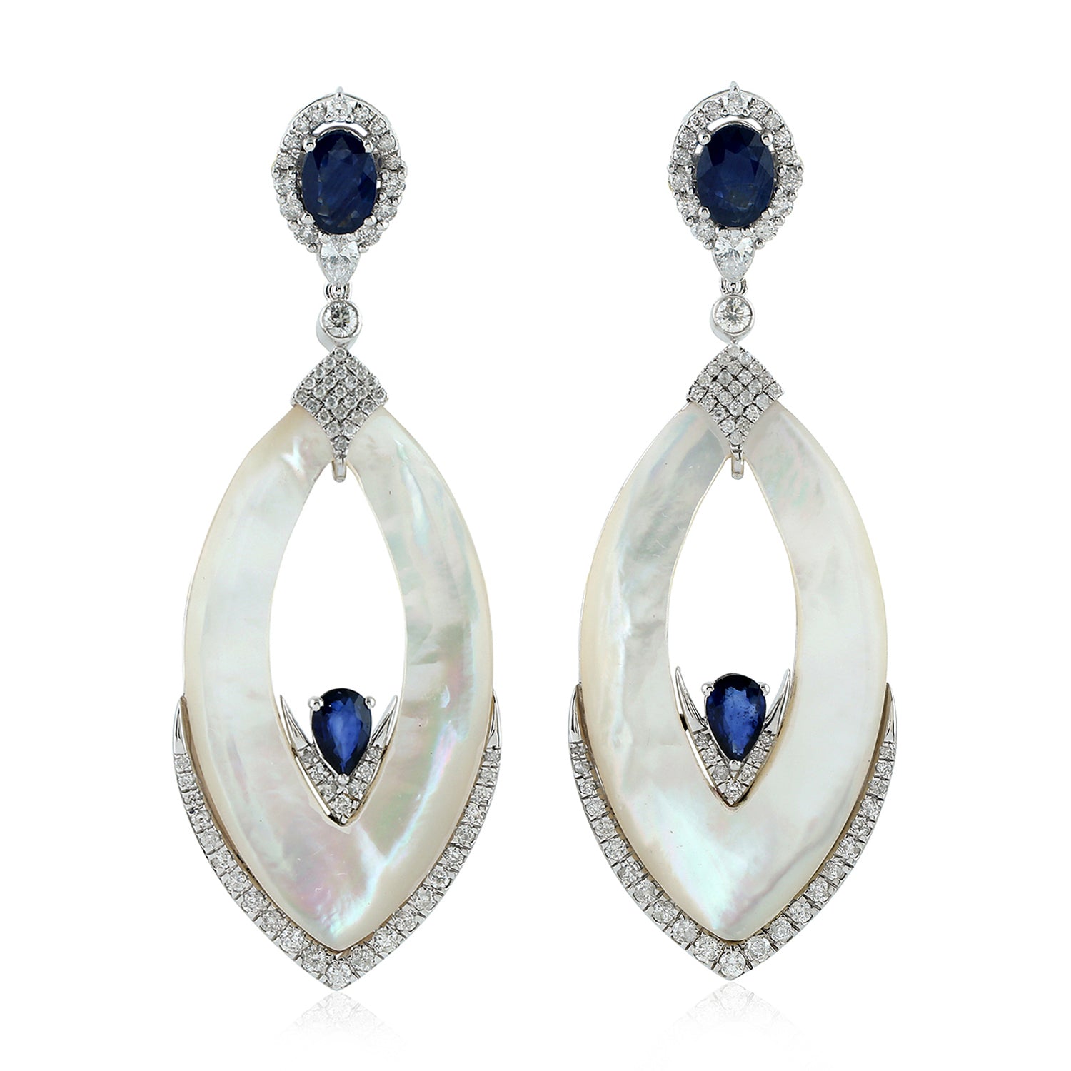MOP Prong Blue Sapphire Pave Diamond Marquise Dangler In 18K White Gold