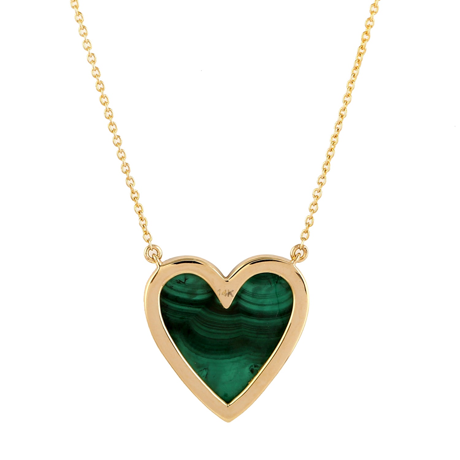 Malachite Pave Diamond Heart Choker Necklace In 14k Yellow Gold
