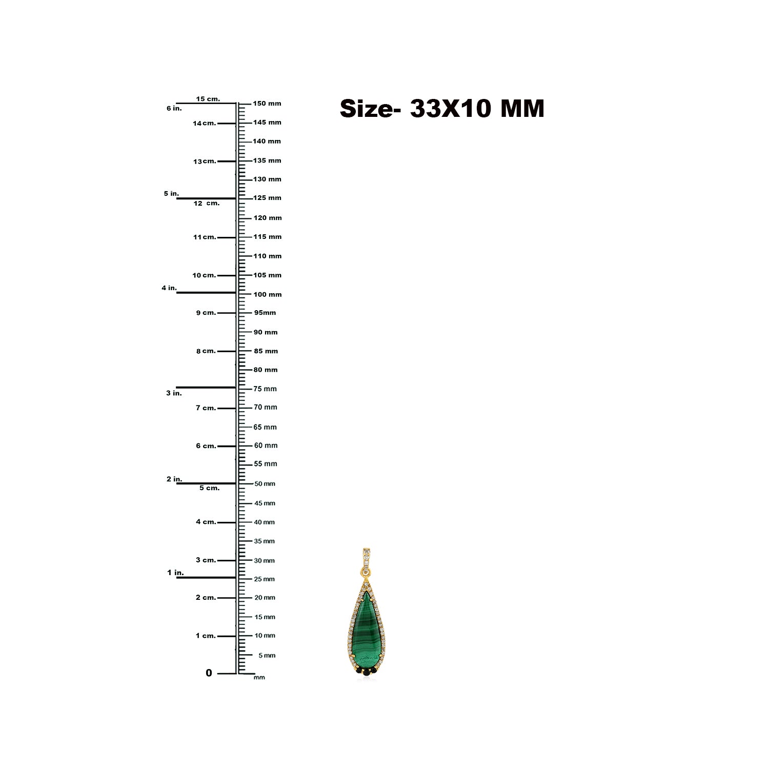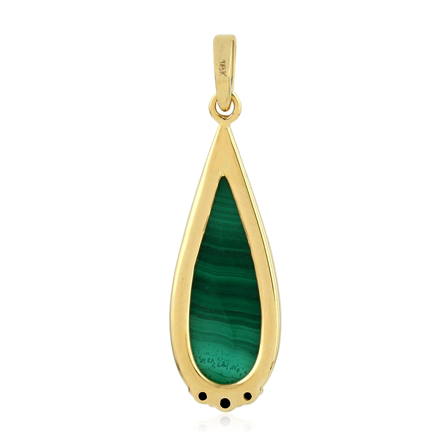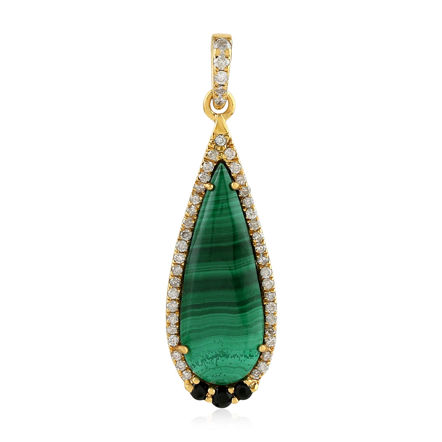 Pear Cut Malachite Prong Spinel Pave Diamond Drop Pendant In 18K Yellow Gold