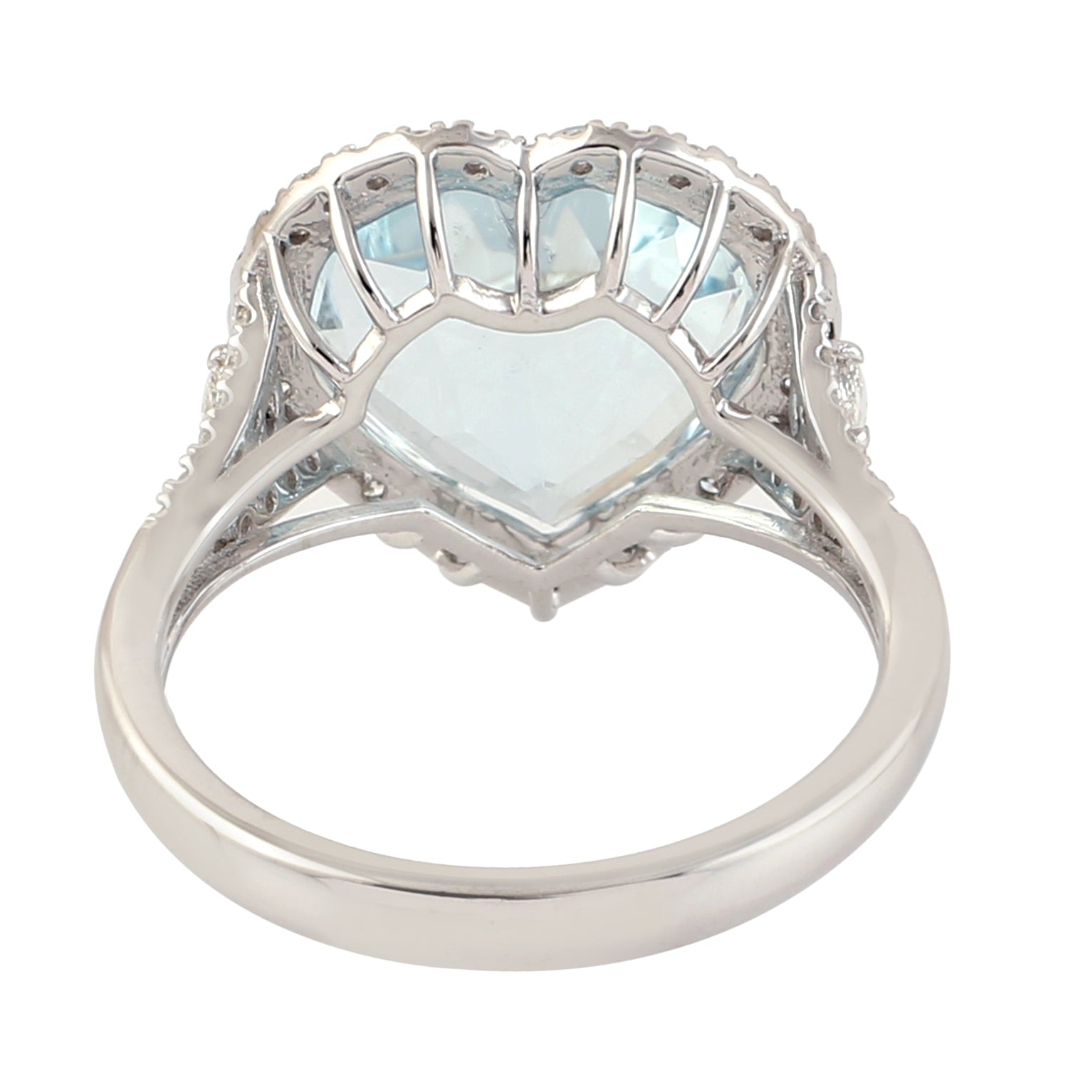 Aquamarine Pave Diamond Accent Heart Solitaire Ring In 18K White Gold