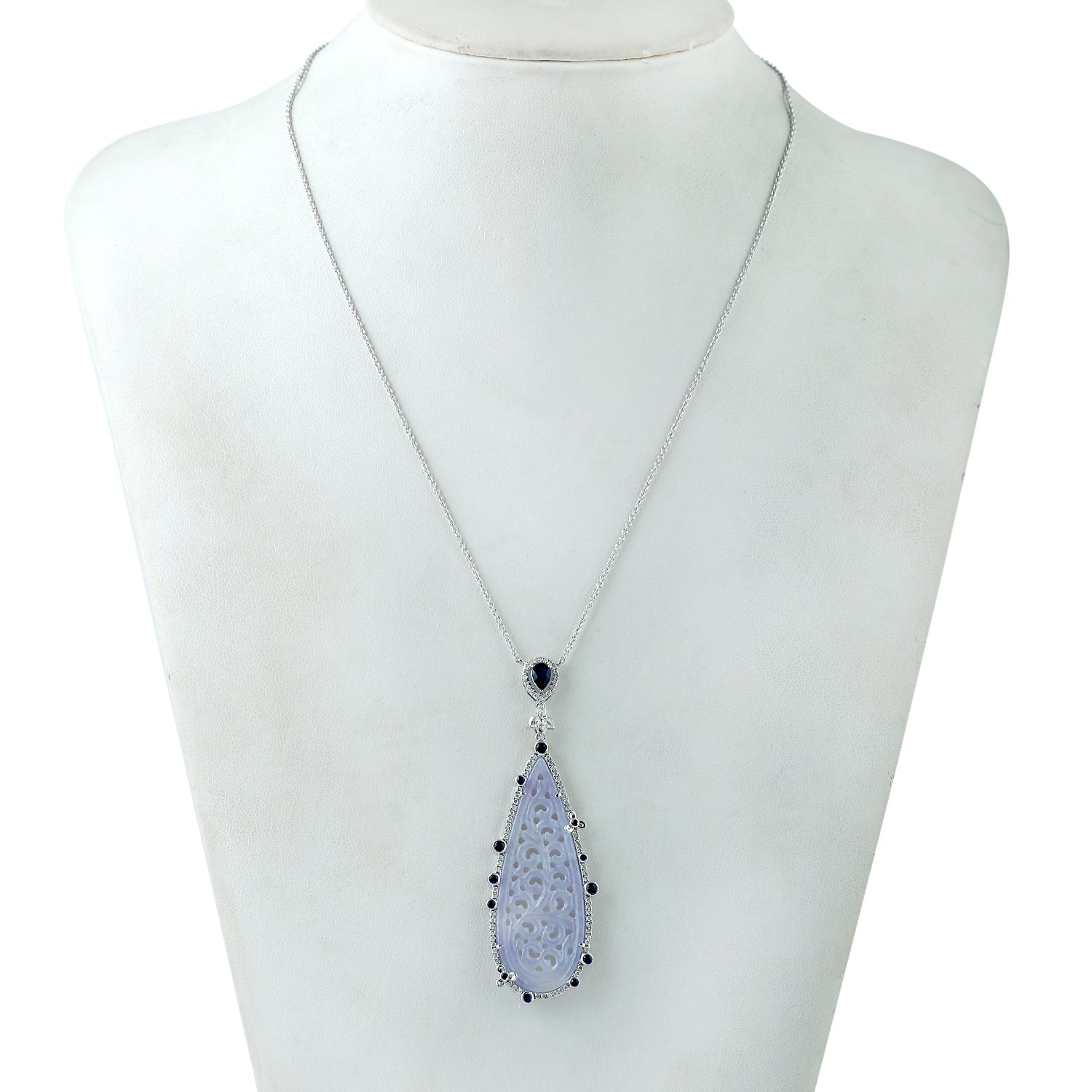 Carved Jade & Blue Sapphire Pave Diamond Choker Necklace in 18K White Gold