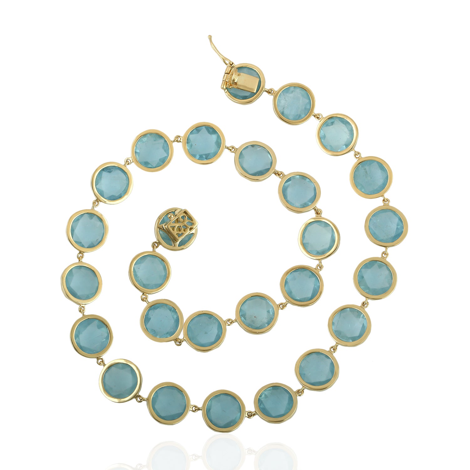 Natural Aquamarine 18k Yellow Gold Elegant Beads Necklace Wedding For her On Sale