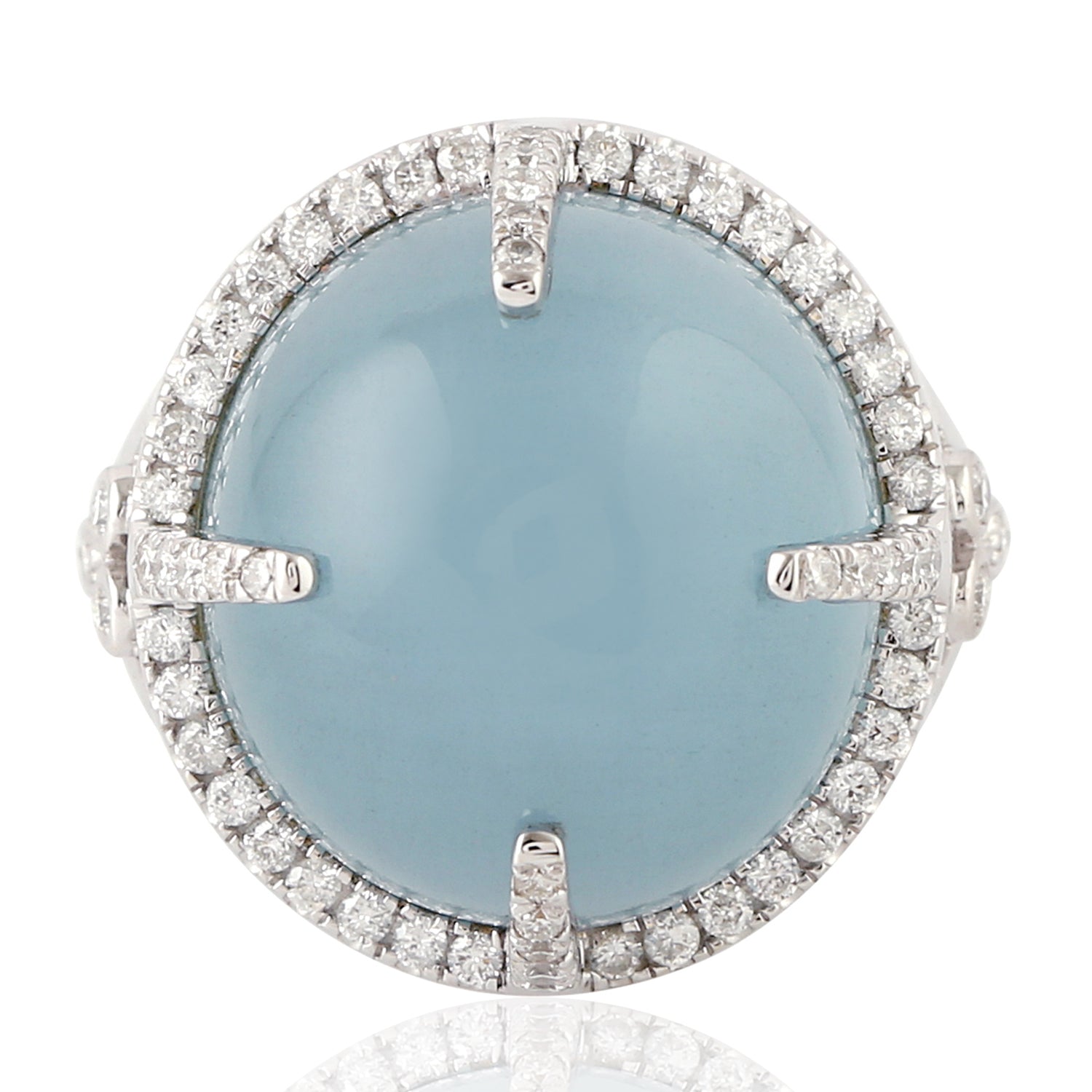 Aquamarine Gemstone Pave Diamond Cocktail Ring In 18k White Gold