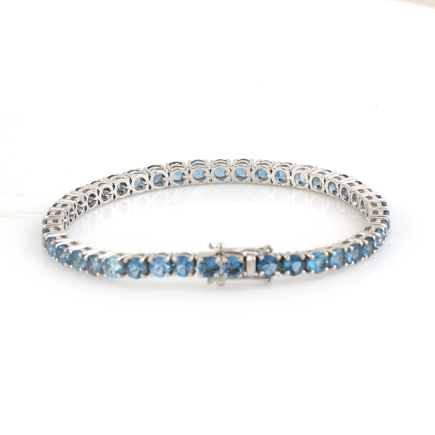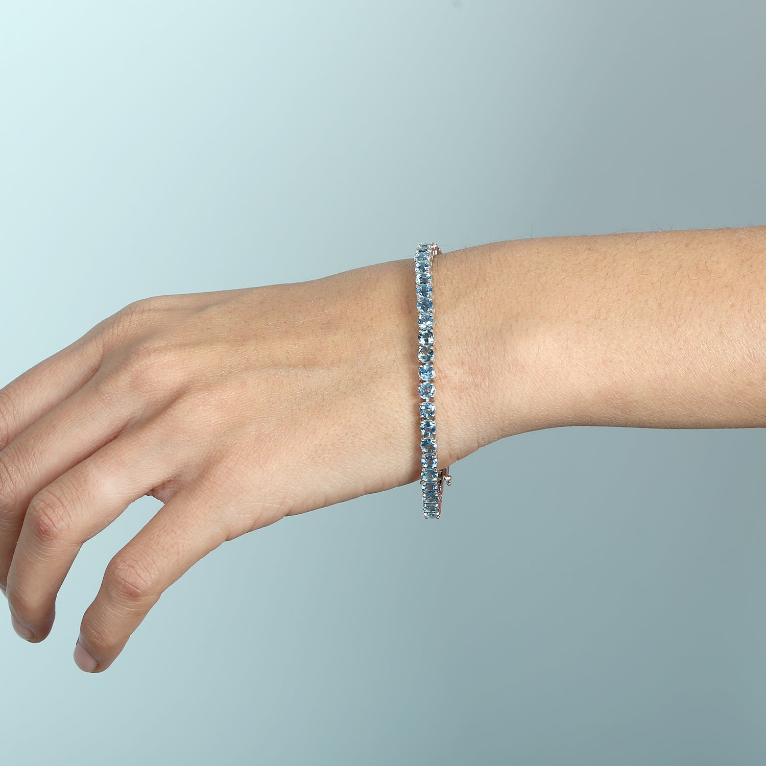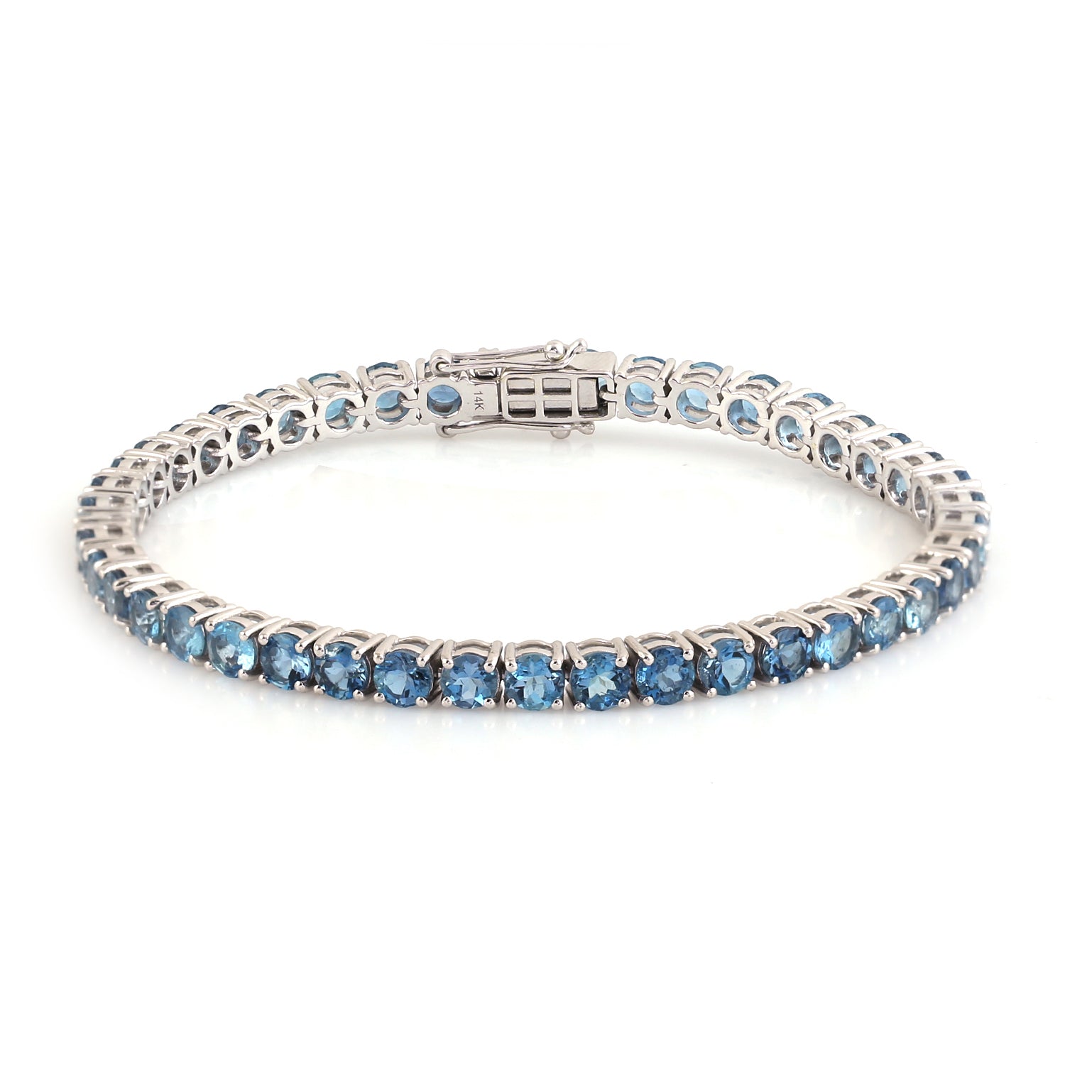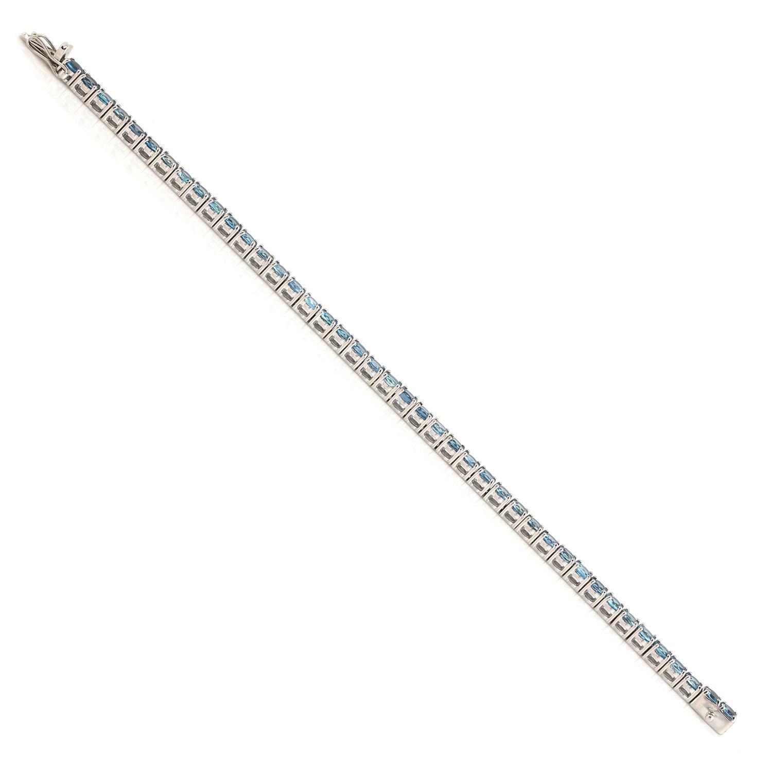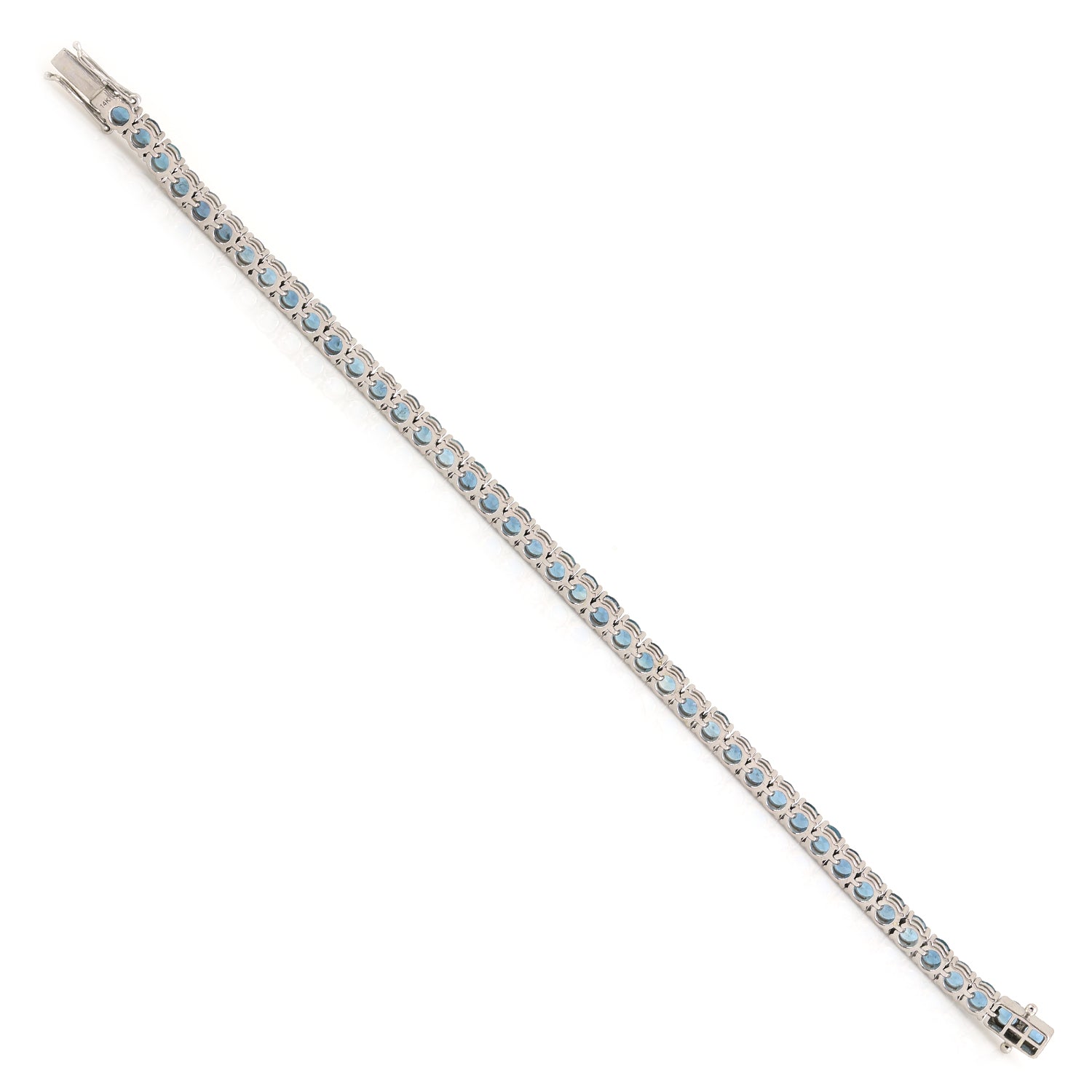 Aquamarine March Birthstone Tennis Fixed & Flexible Bracelet In 14K White Gold