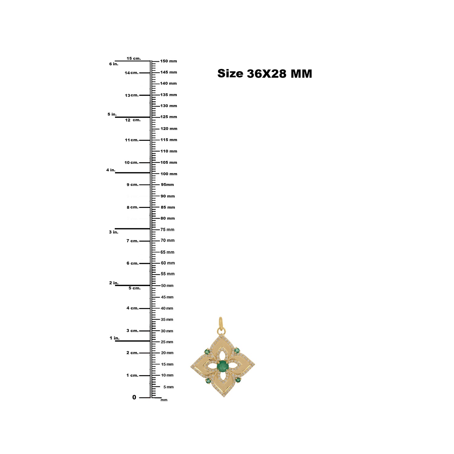 Emerald Gemstone Pave Diamond Floral Pendant In 14k Yellow Gold