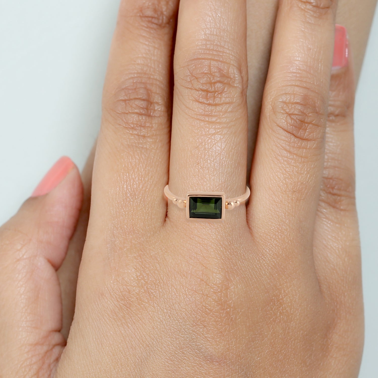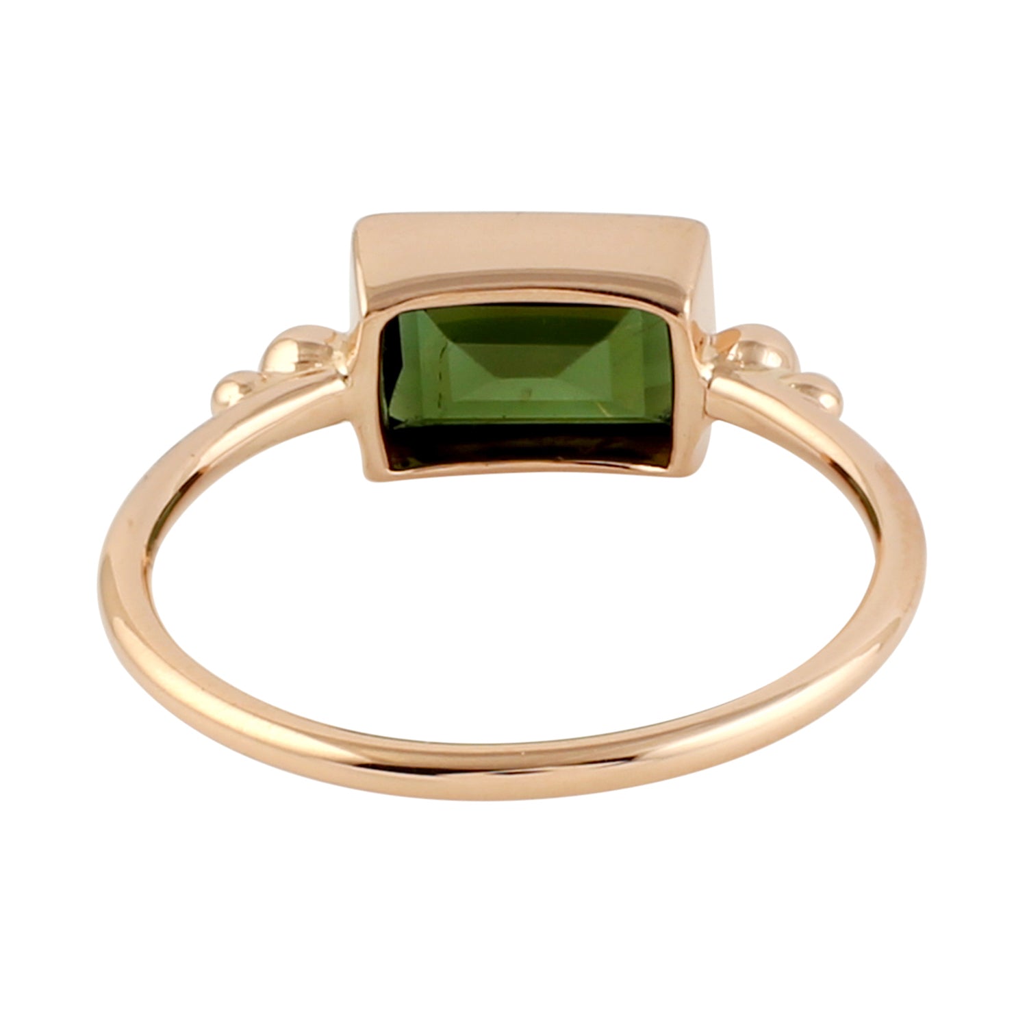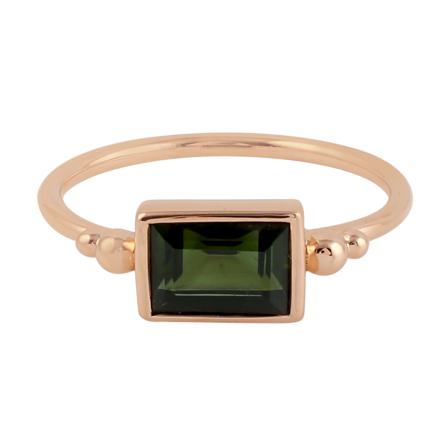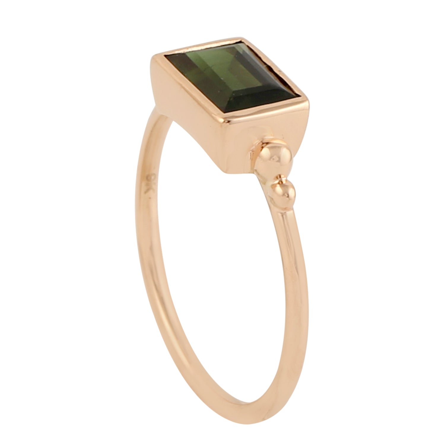 Baguette Cut Green Tourmaline Ring In 9K Rose Gold