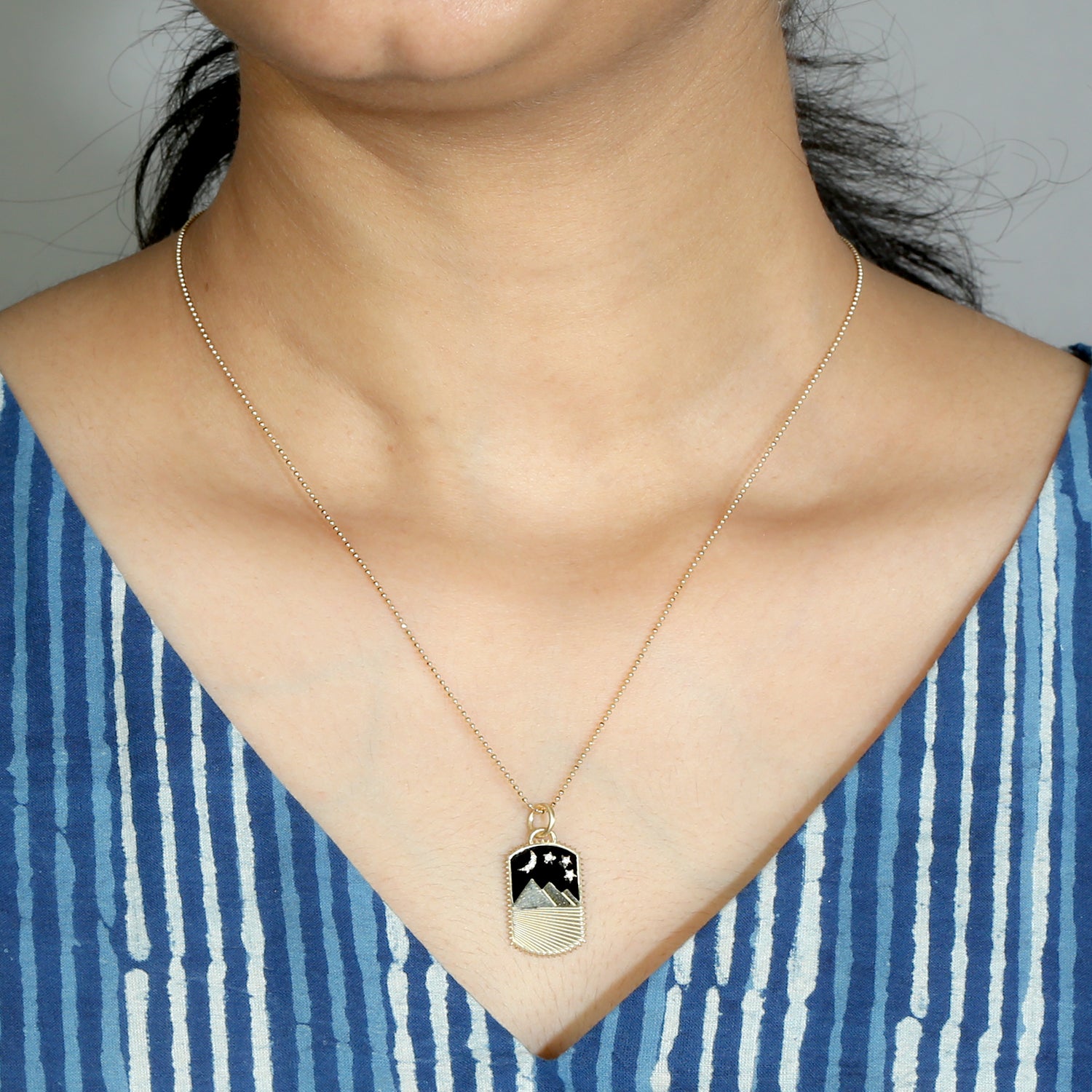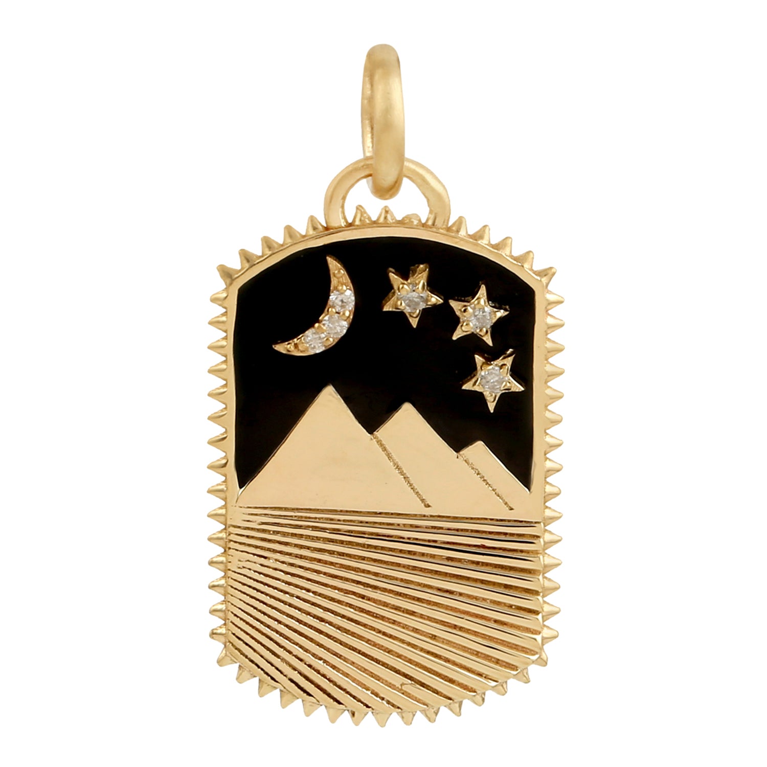 Pave Diamond Moon and Star Desert Charm Pendant In 14k Yellow Gold