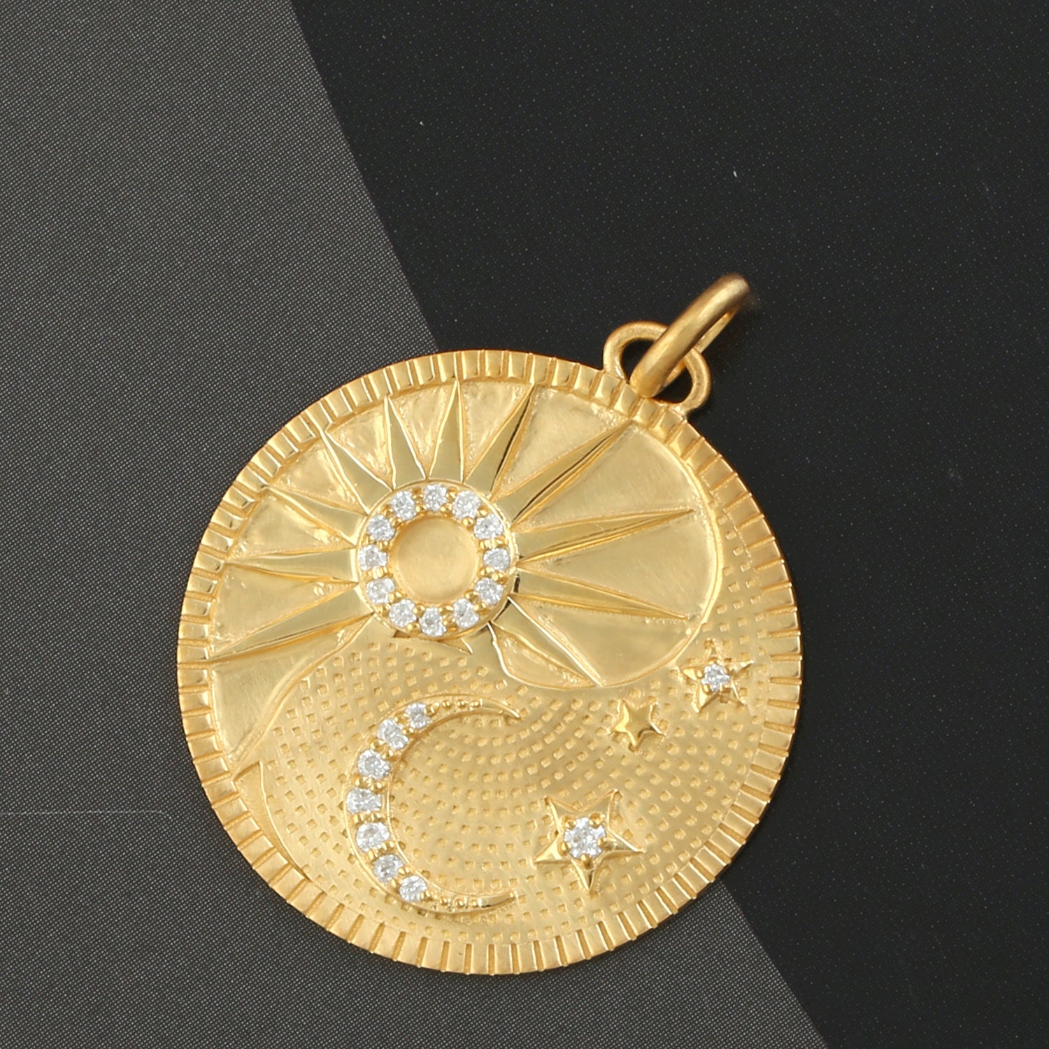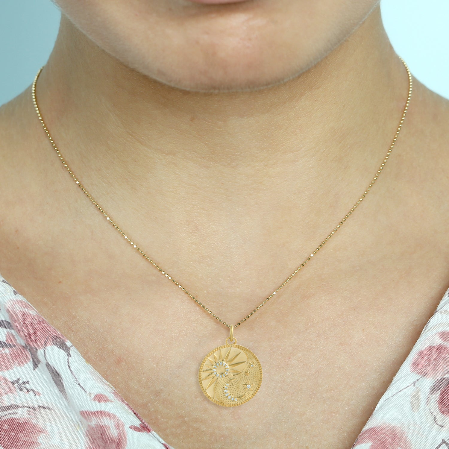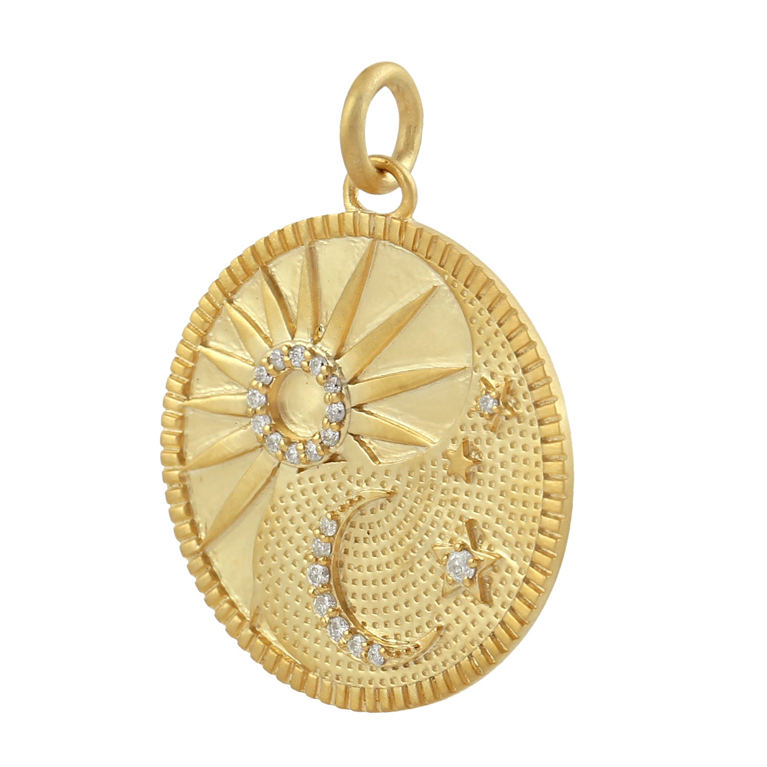 14k Yellow Gold Crescent Moon Sun And Star Pendant Pave Diamond