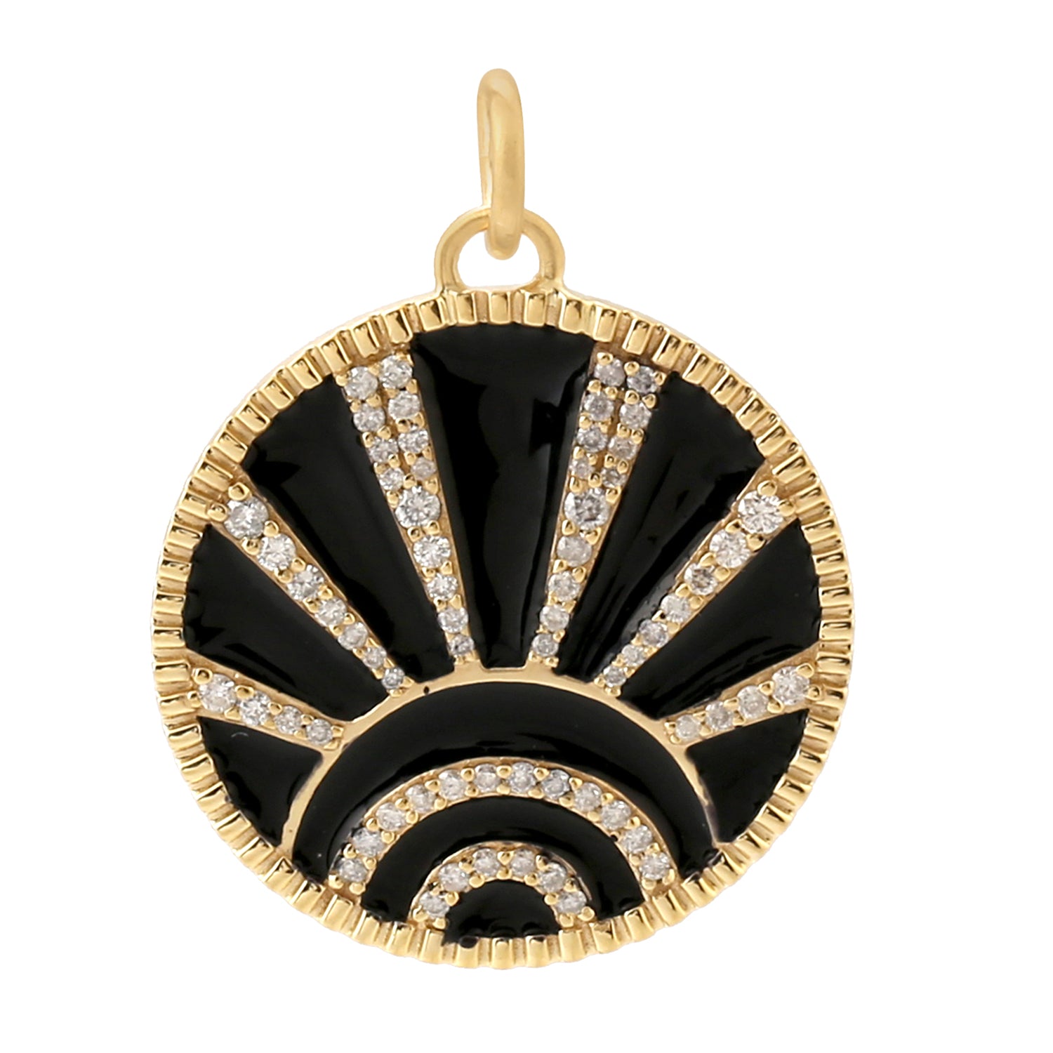 14K Yellow Gold Pave Diamond Sunrise Enamel Charm Pendant