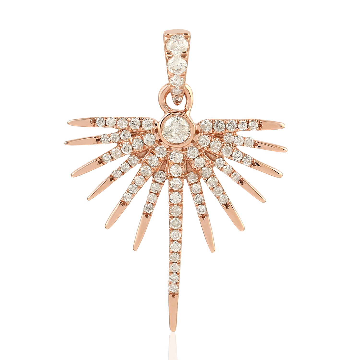 • 18K Rose Gold Micro Pave Diamond Starburst Pendant For Her