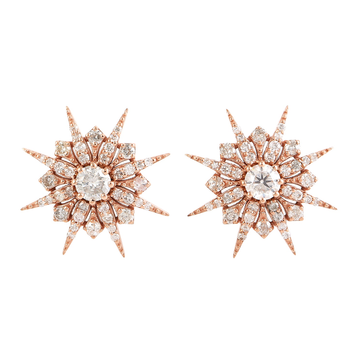 18K Rose Gold Pave Diamond Starburst Stud Earrings For Women's