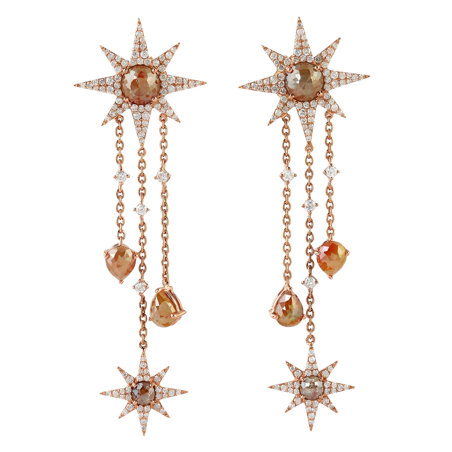 • Round Ice Diamond Star Chandelier Earrings in 18K Rose Gold for Women