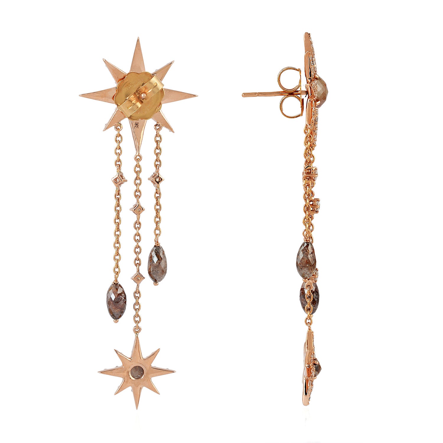 Round Ice Diamond Star Chandelier Earrings in 18K Rose Gold for Women