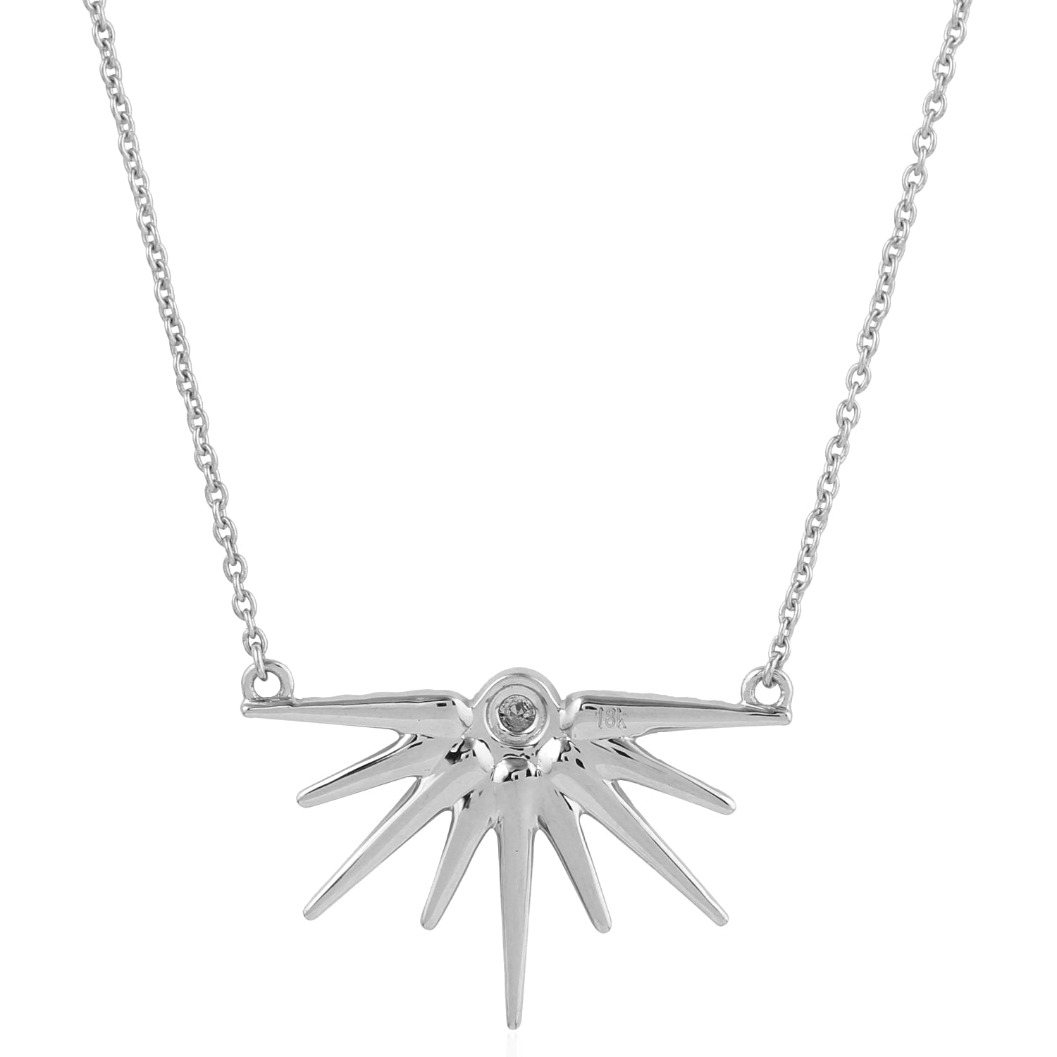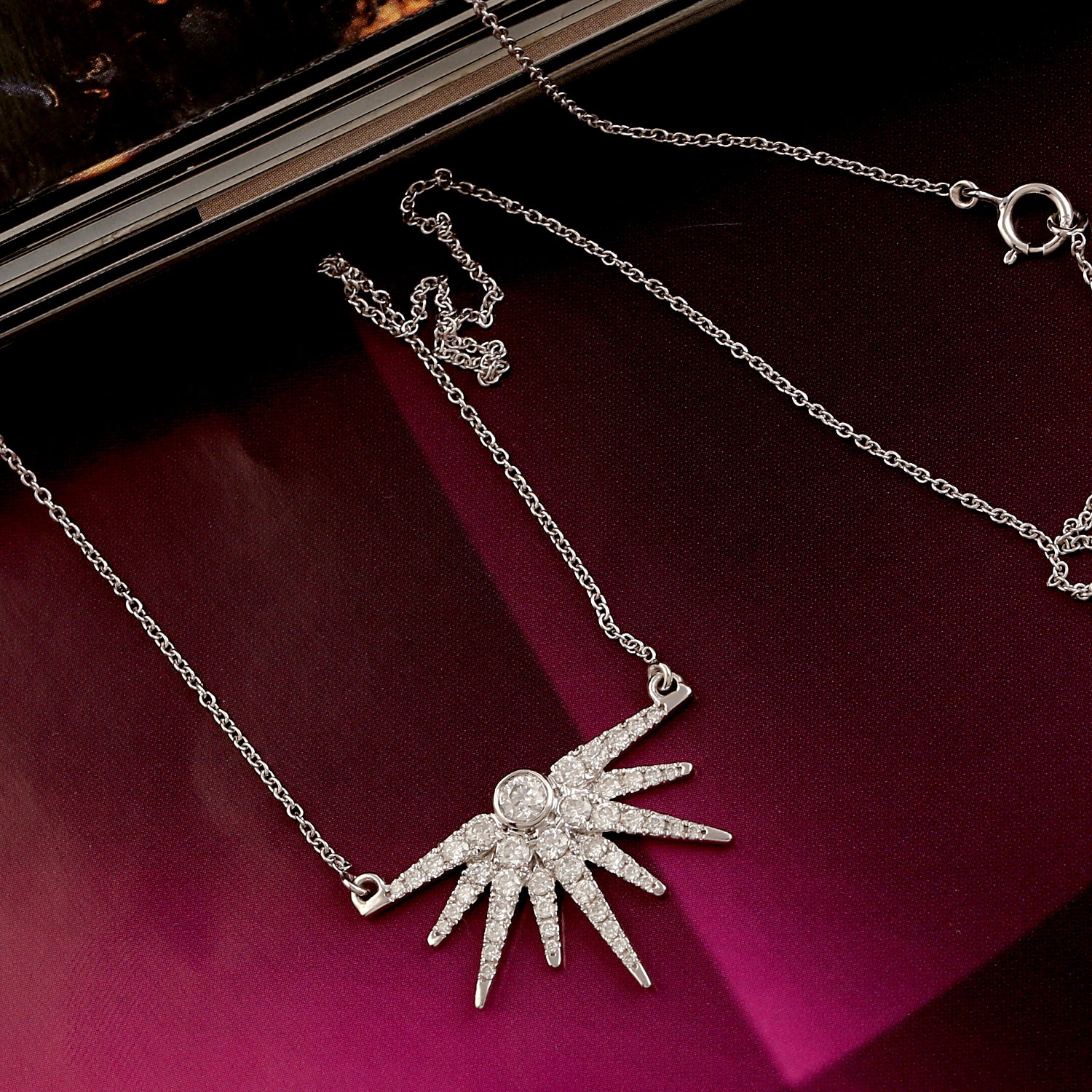 18k White Gold Pave Diamond Half Sun Burst Chain Necklace Birthday Gift