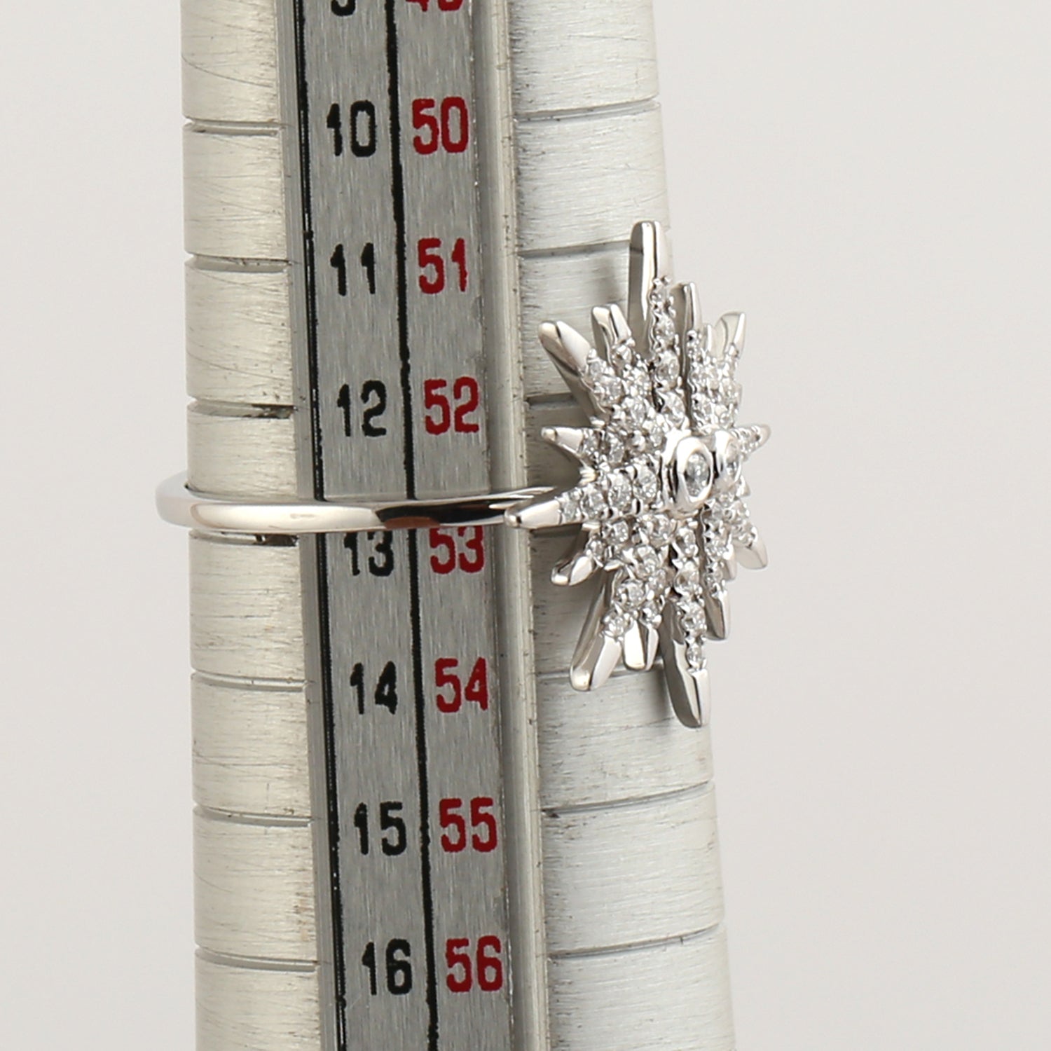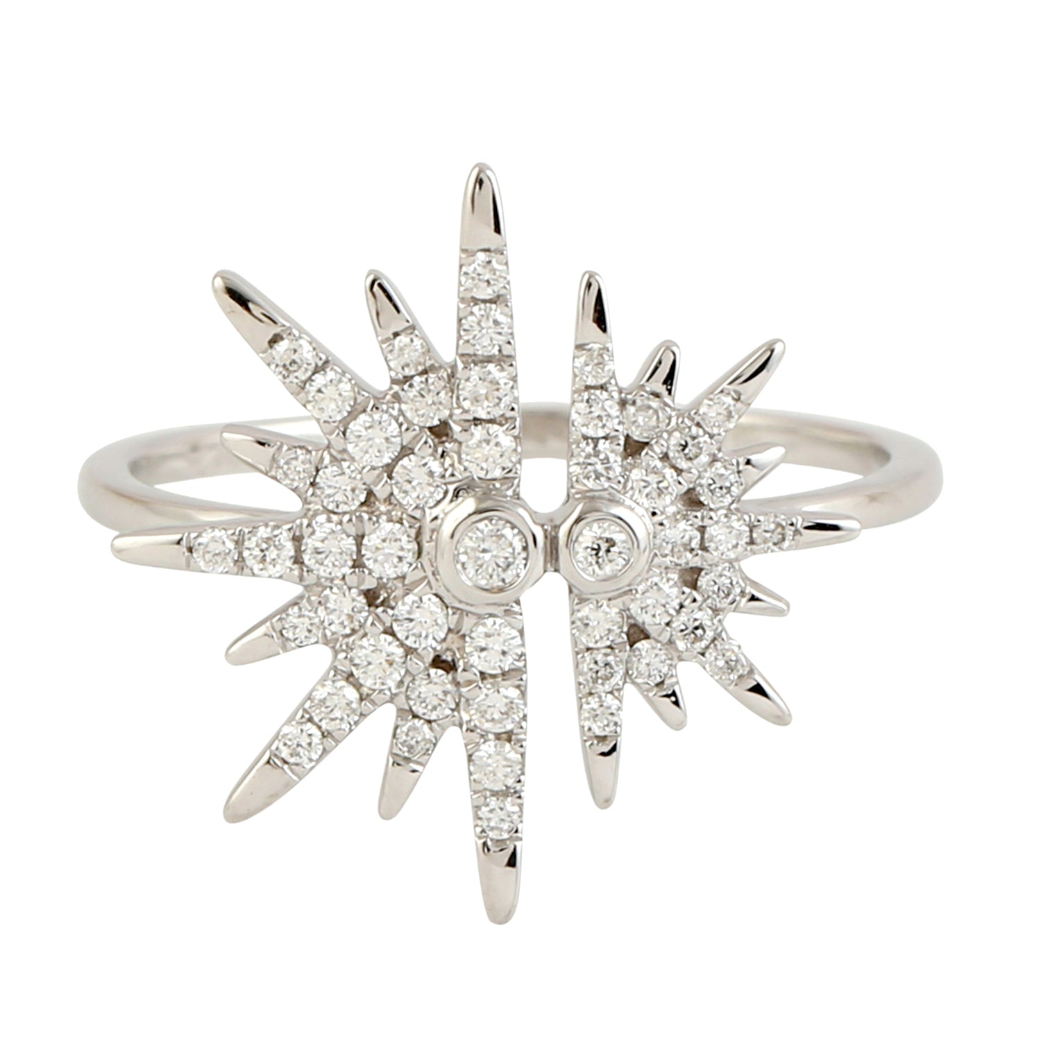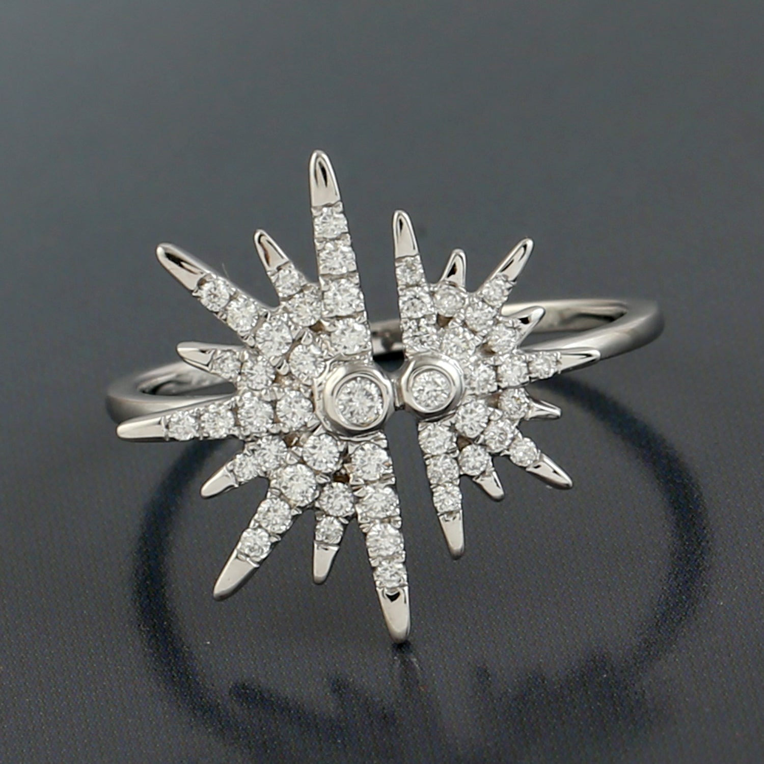 18K White Gold Pave Natural Diamond Starburst Ring For Gifts