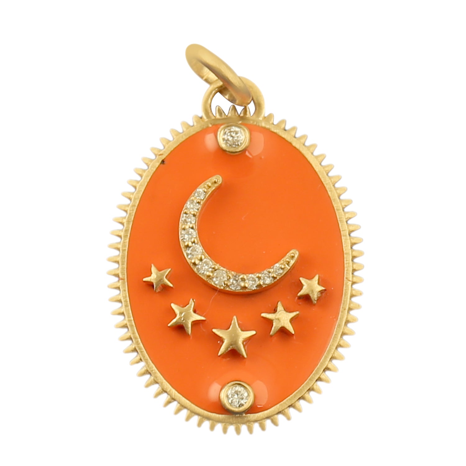 • Crescent Moon and Star Enamel Pendant in 18K Yellow Gold – Celestial Gift Jewelry