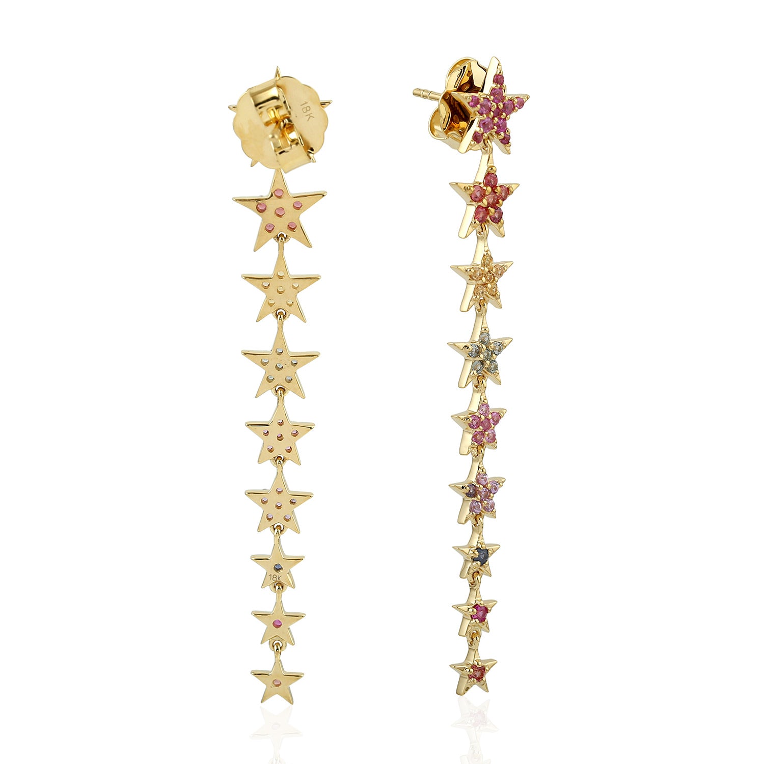 • Multicolor Sapphire Gemstone Star Dangle Earrings In Yellow Gold