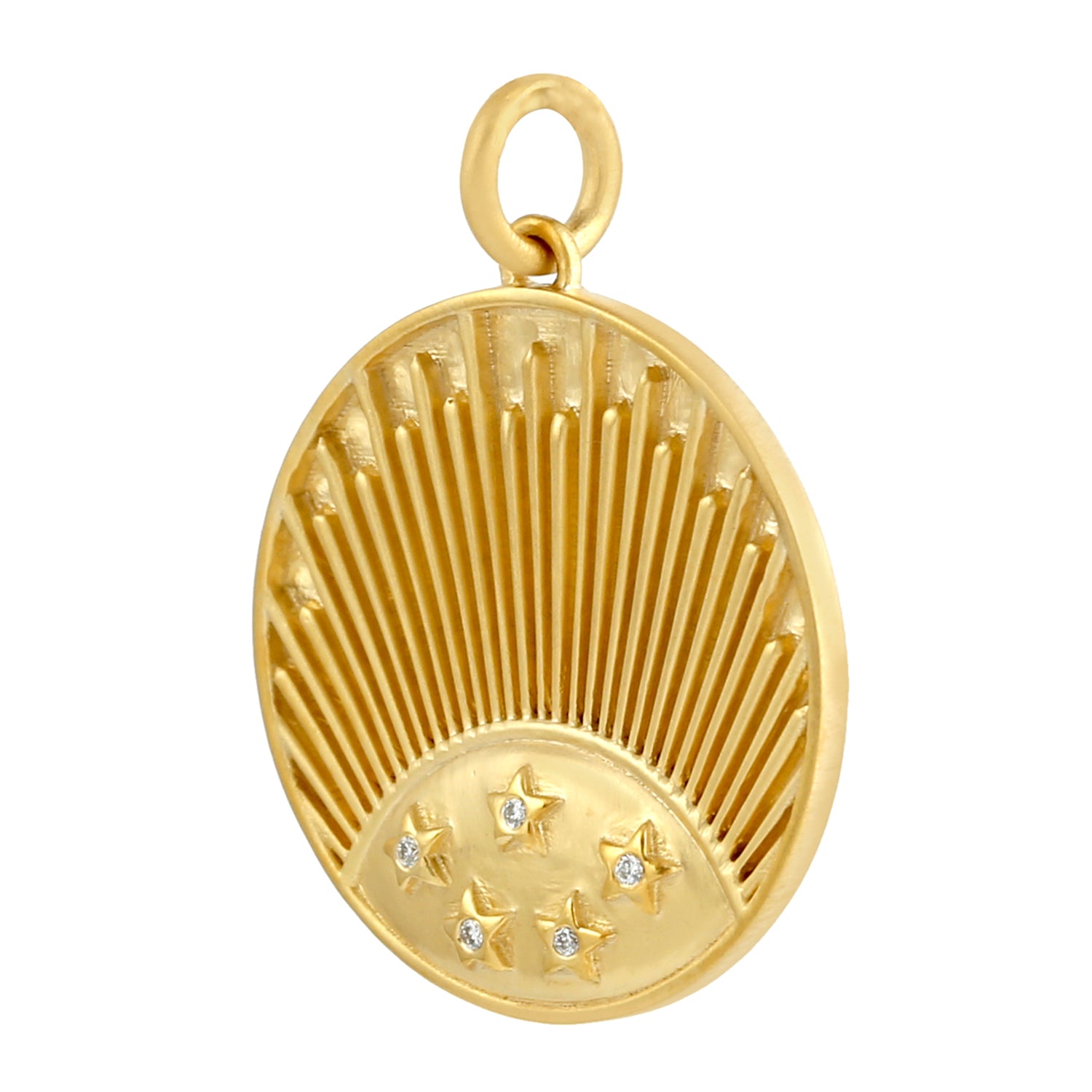 Pave Diamond Sun Light With Star Pendant In 14k Yellow Gold For Gift