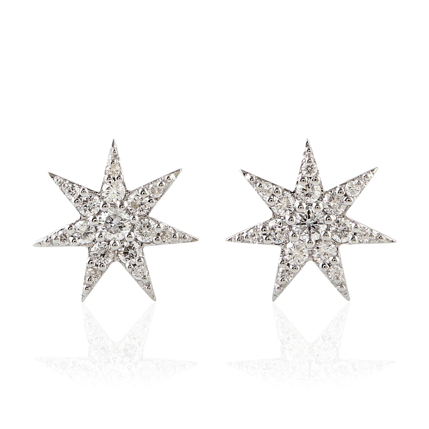 • Solid 18K White Gold Prong Natural Diamond Star Stud Earrings For Her
