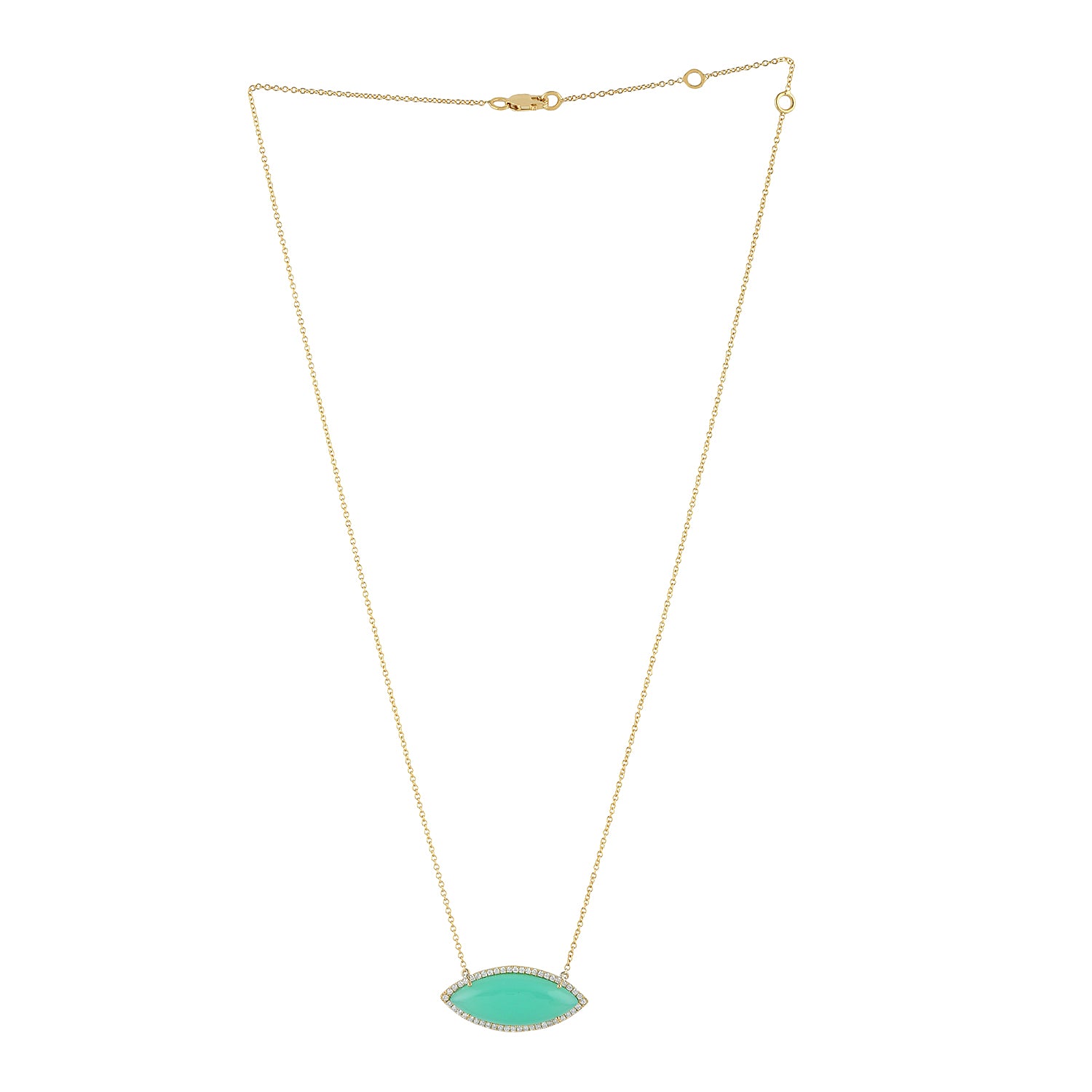 Chrysoprase Pave Diamond In 14k Yellow Gold Evil Eye Choker Necklace