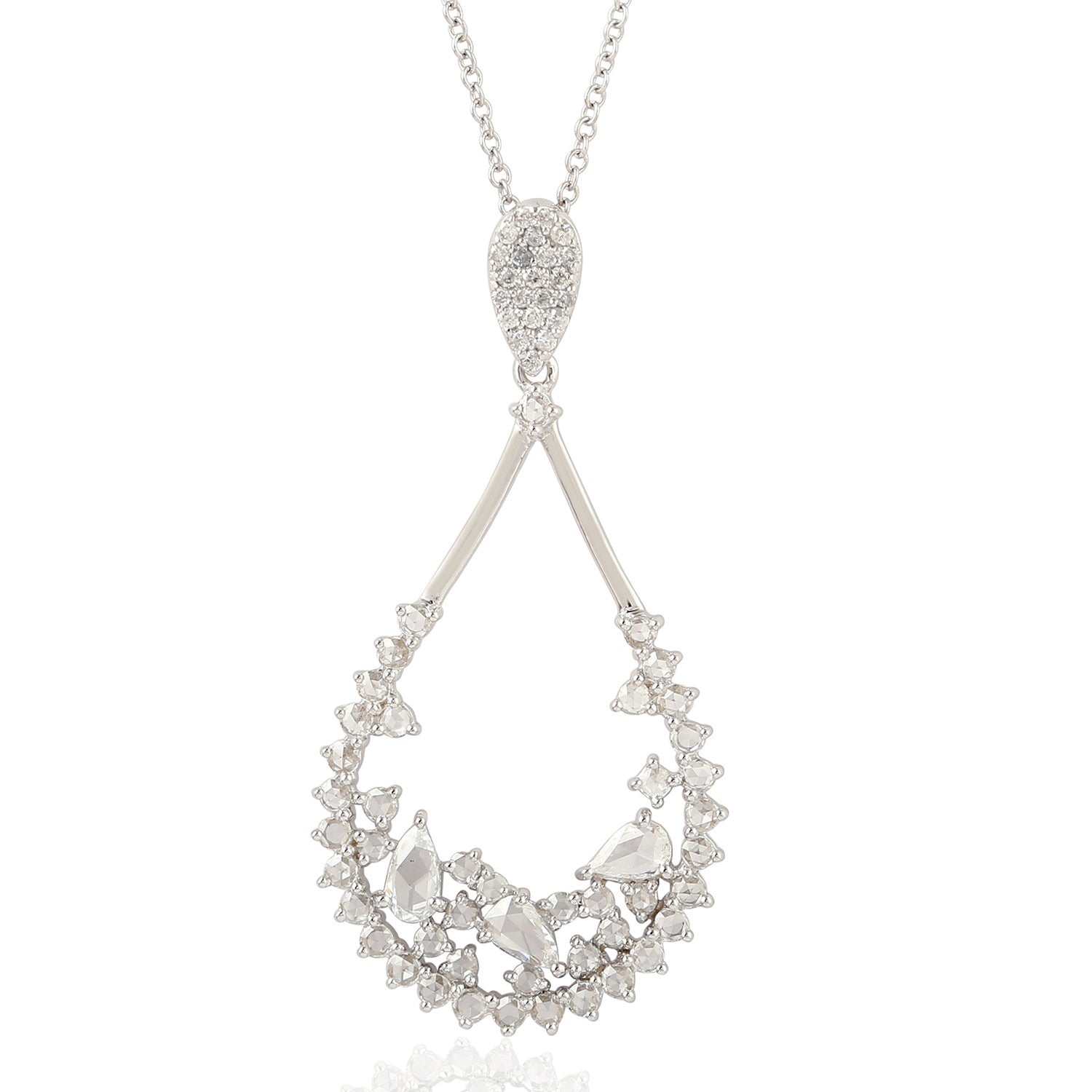 Natural Diamond In 18K White Gold Choker Necklace Jewelry