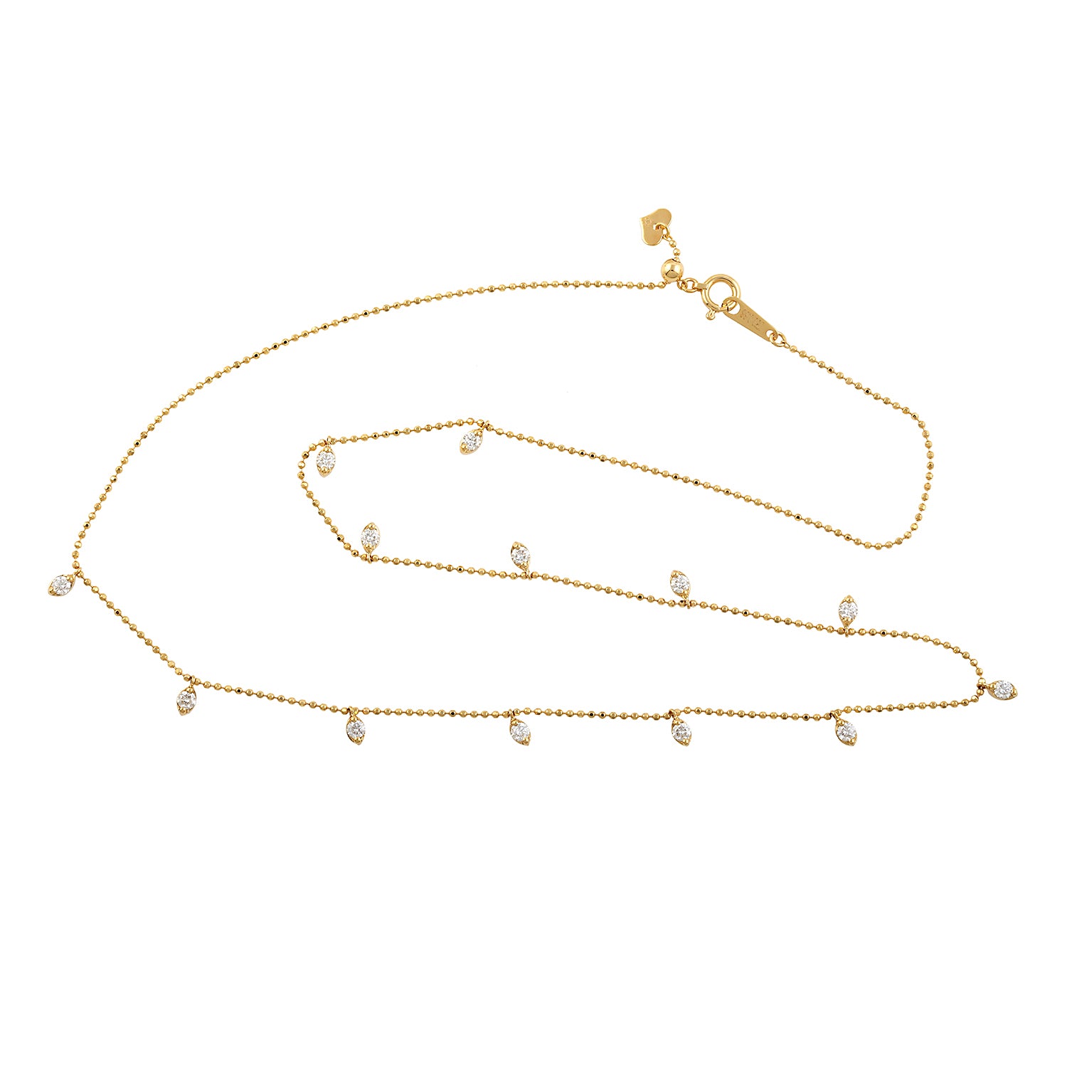 Natural Diamond Station Chain Necklace in 18k Yellow Gold – Delicate Fine Jewelry