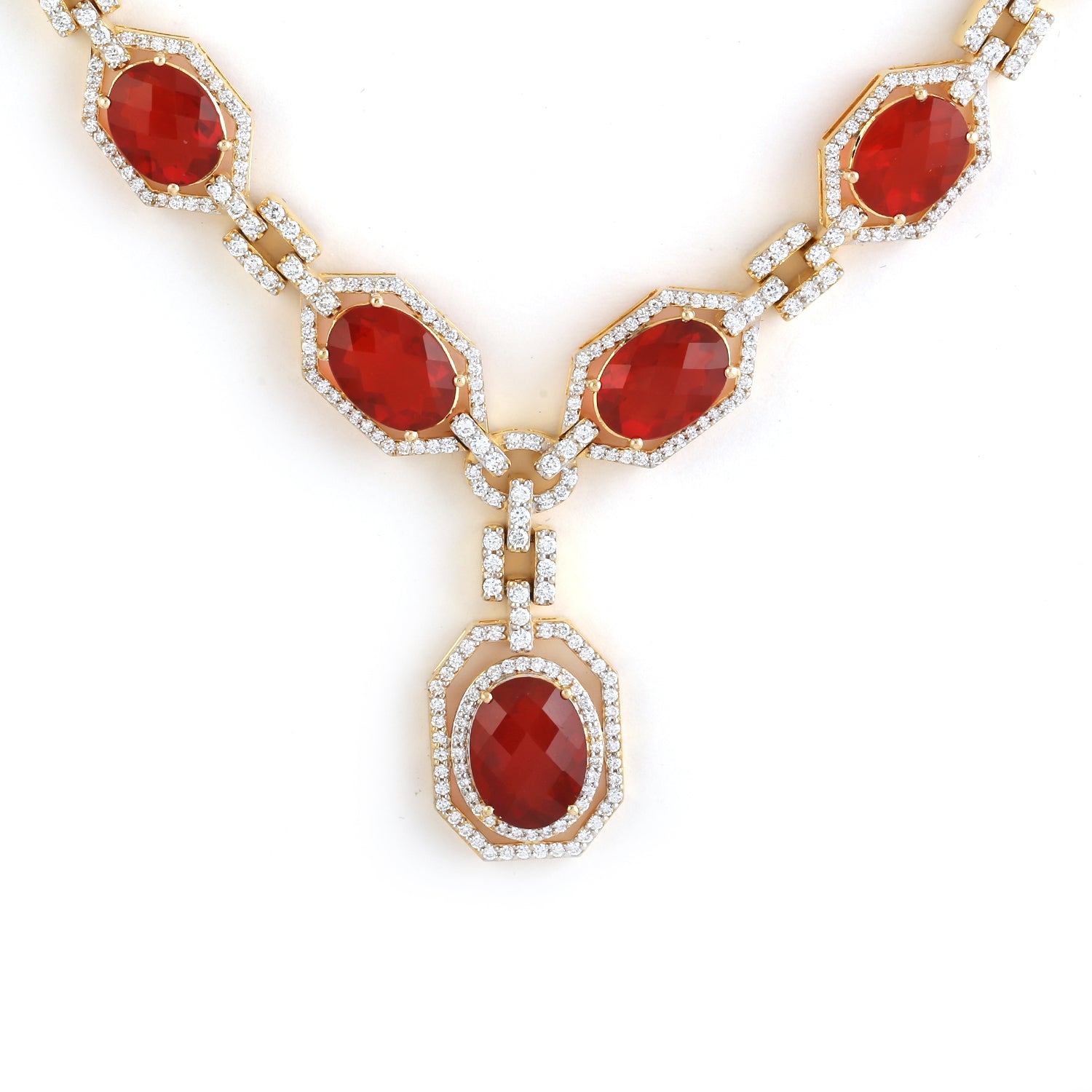 18k Yellow Gold Choker Necklace with Oval Cut Fire Opal & Pave Diamonds – Radiant Statement Jewelry for Her