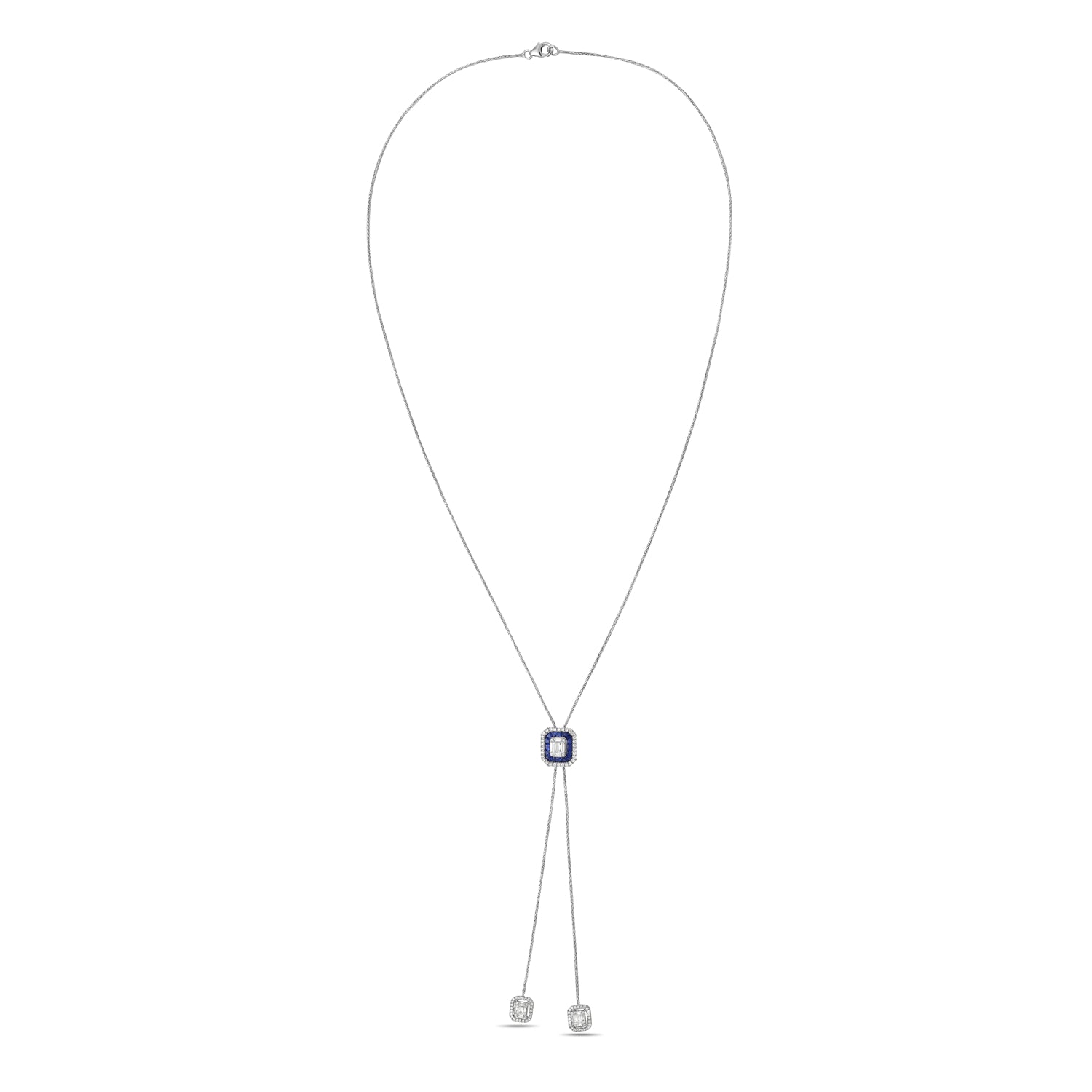 Channel Set Blue Sapphire Pave Diamond Designer Necklace In 18k White Gold