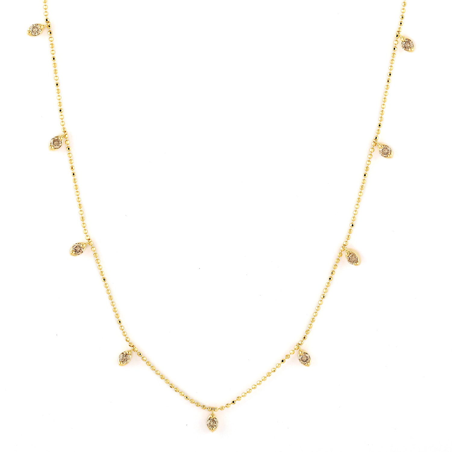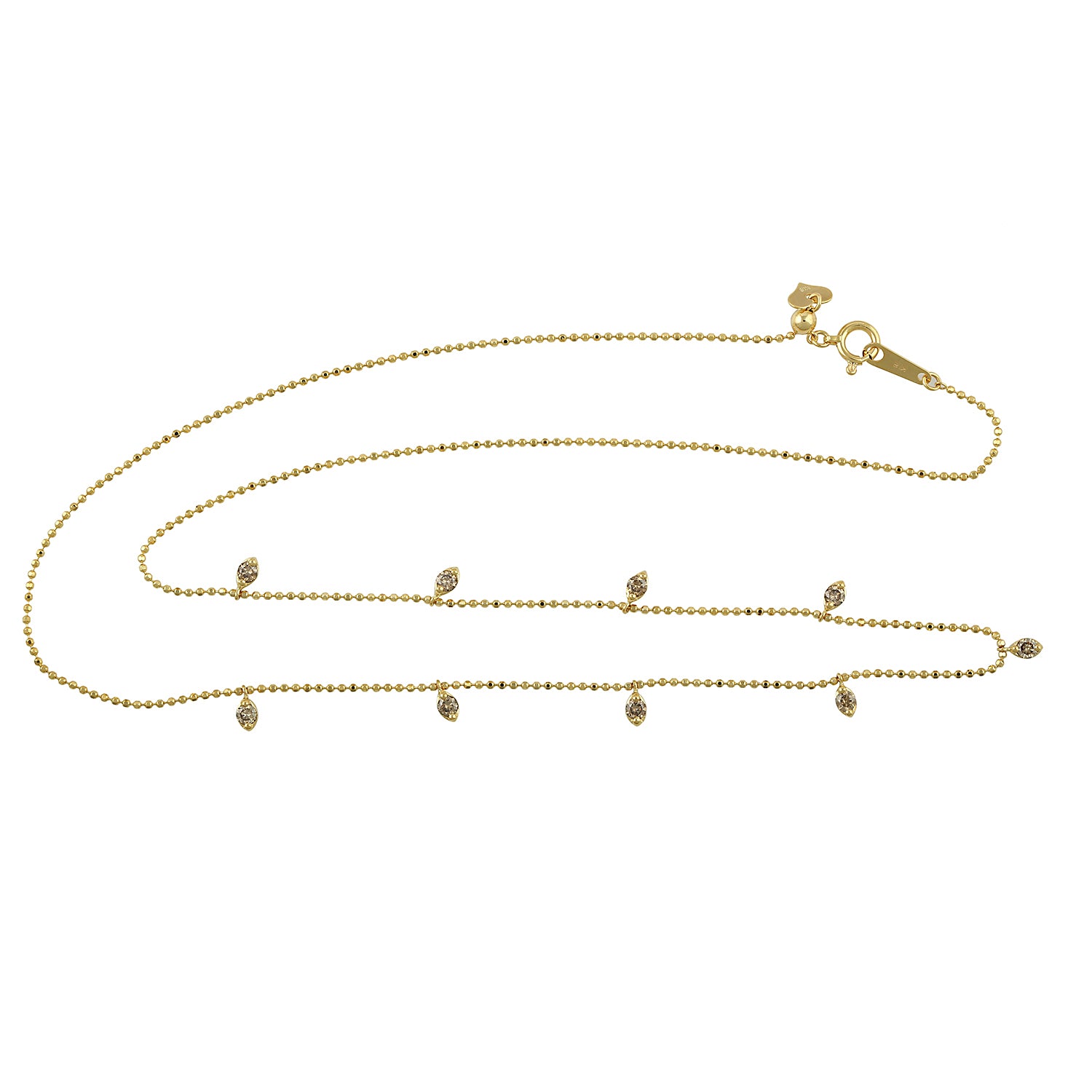 18k Yellow Gold Dot Diamond Bead Chain Necklace Dainty Jewelry