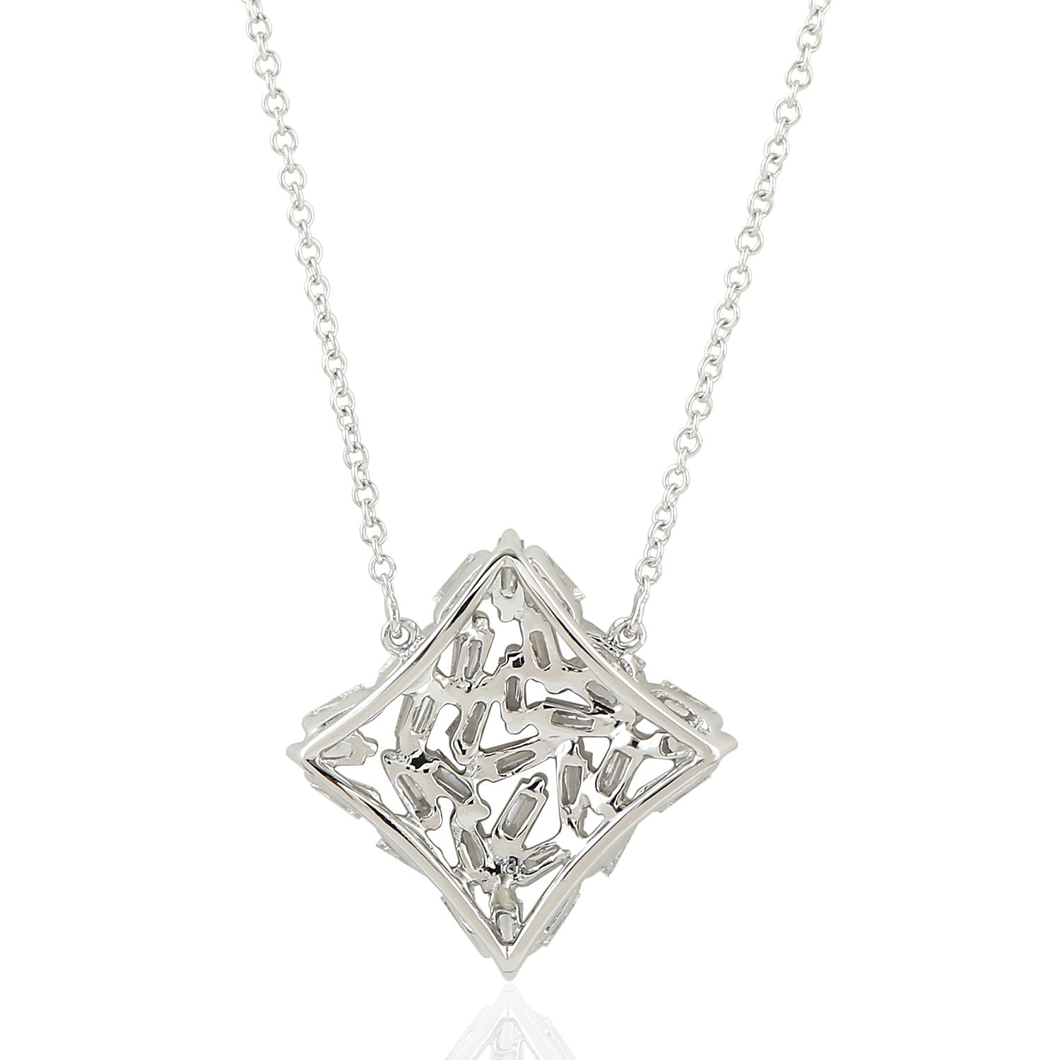 Handmade Baguette Cut Diamond Choker Necklace in 18K White Gold