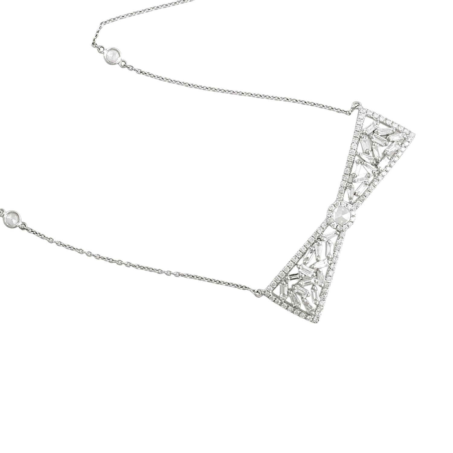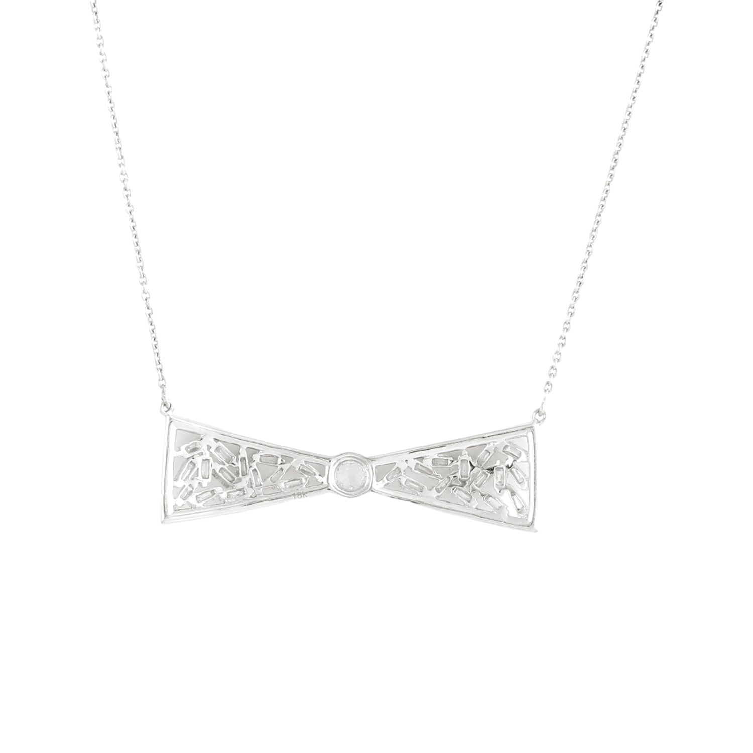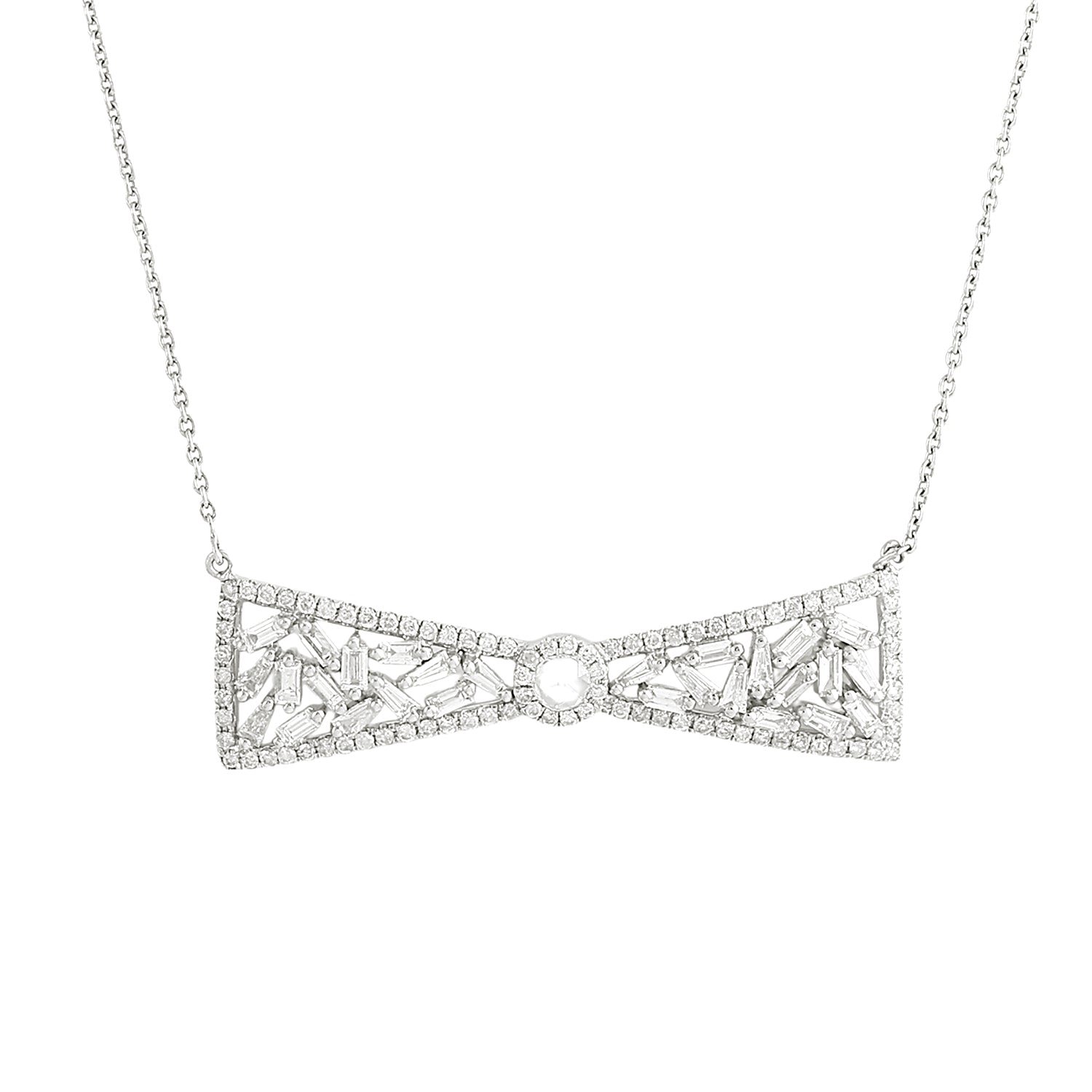 Baguette Diamond Bow Princess Necklace in 18K White Gold – Elegant Women’s Jewelry Gift