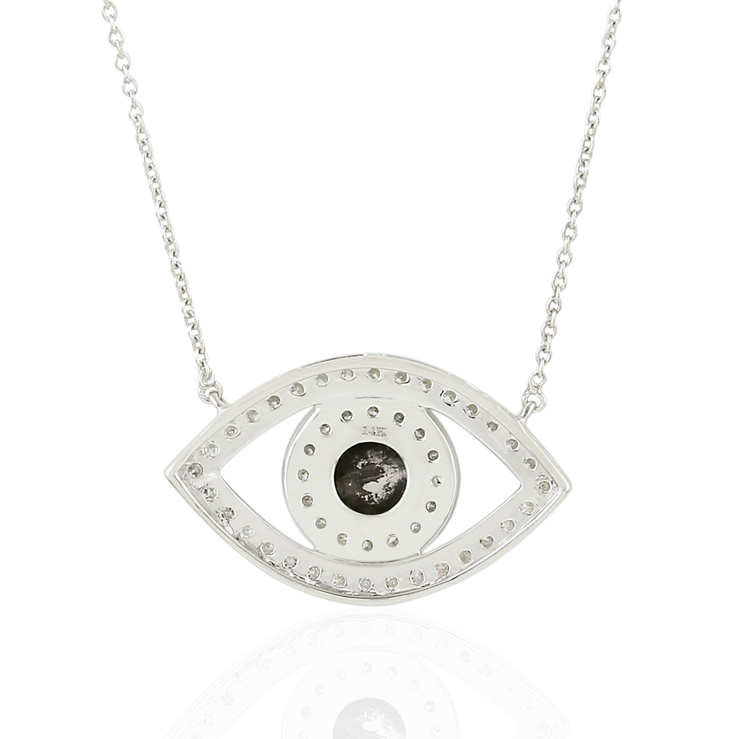 14K White Gold Pave Diamond Evil Eye Necklace – Handmade Protection Jewelry