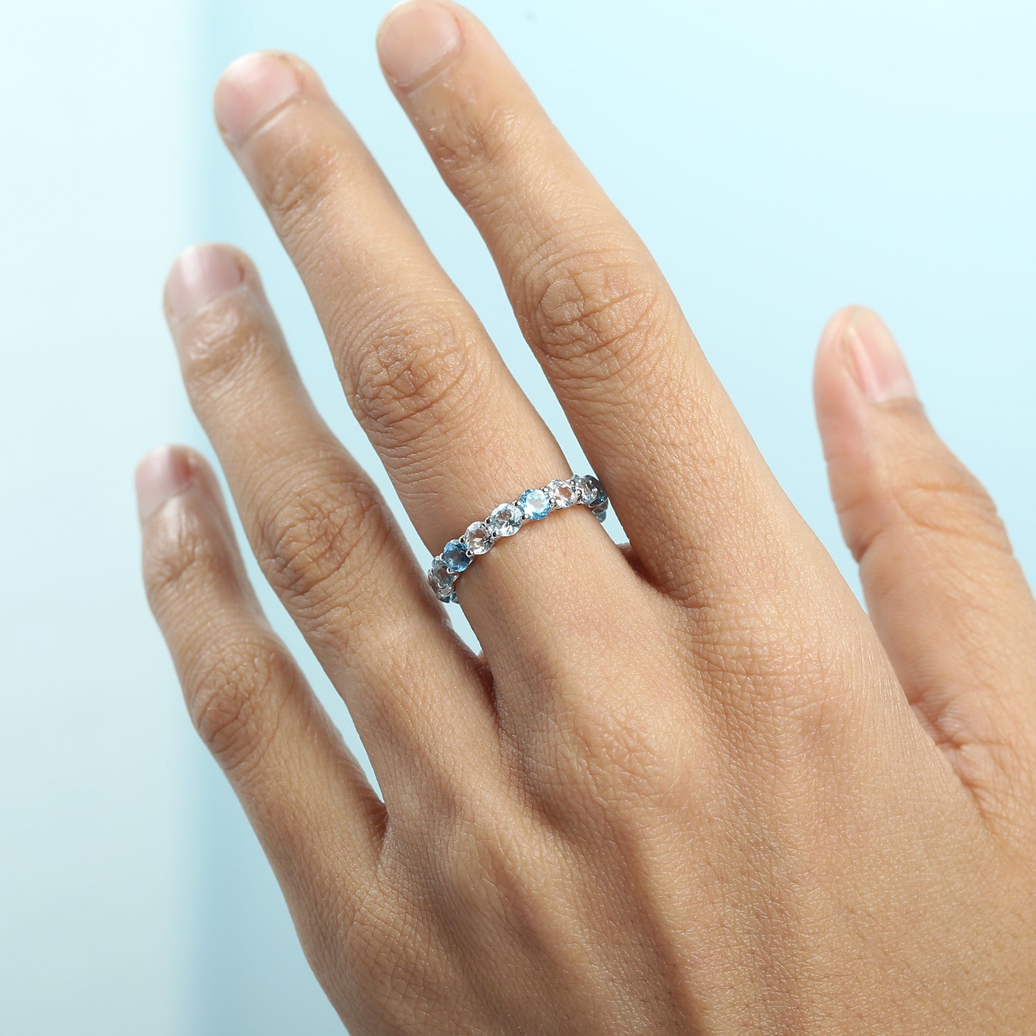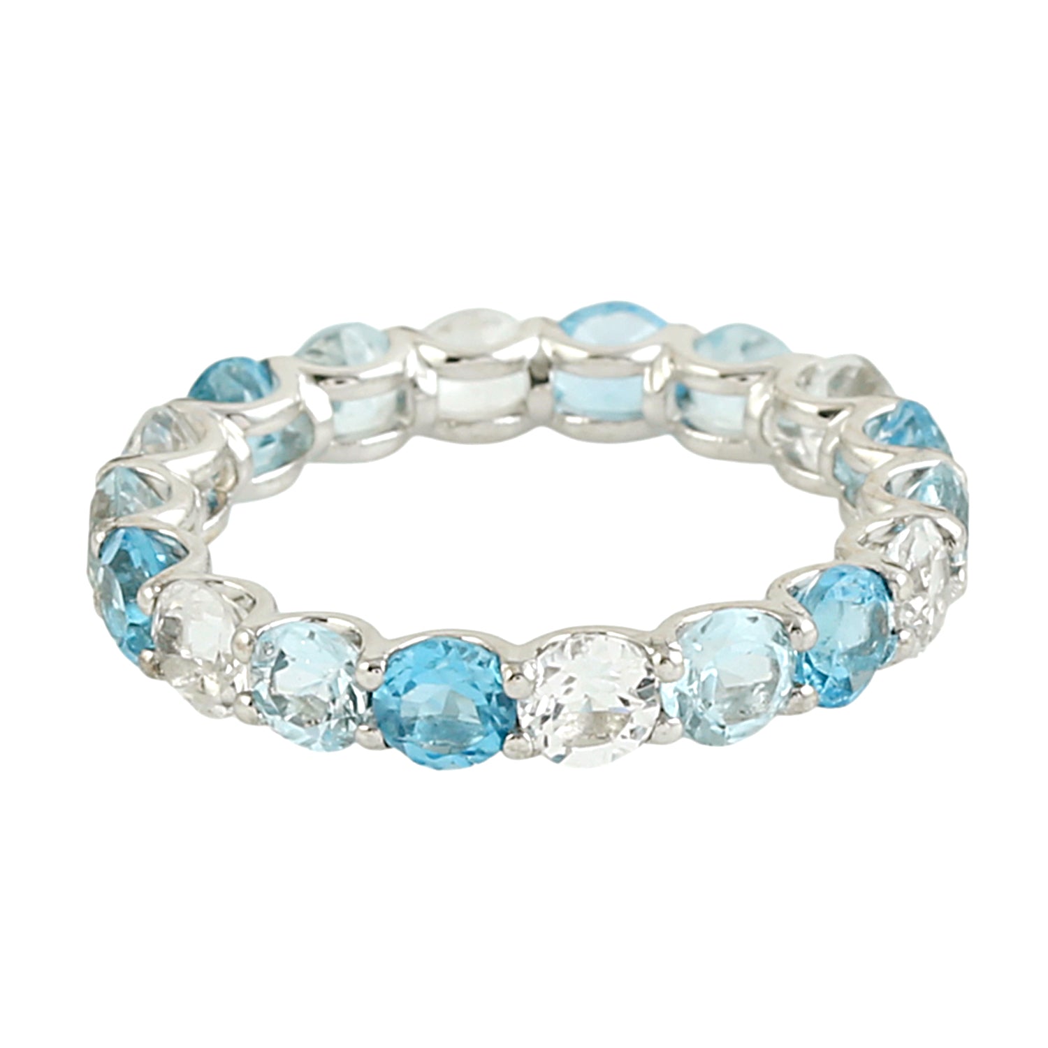 Blue & White Topaz Eternity Band in 18k White Gold