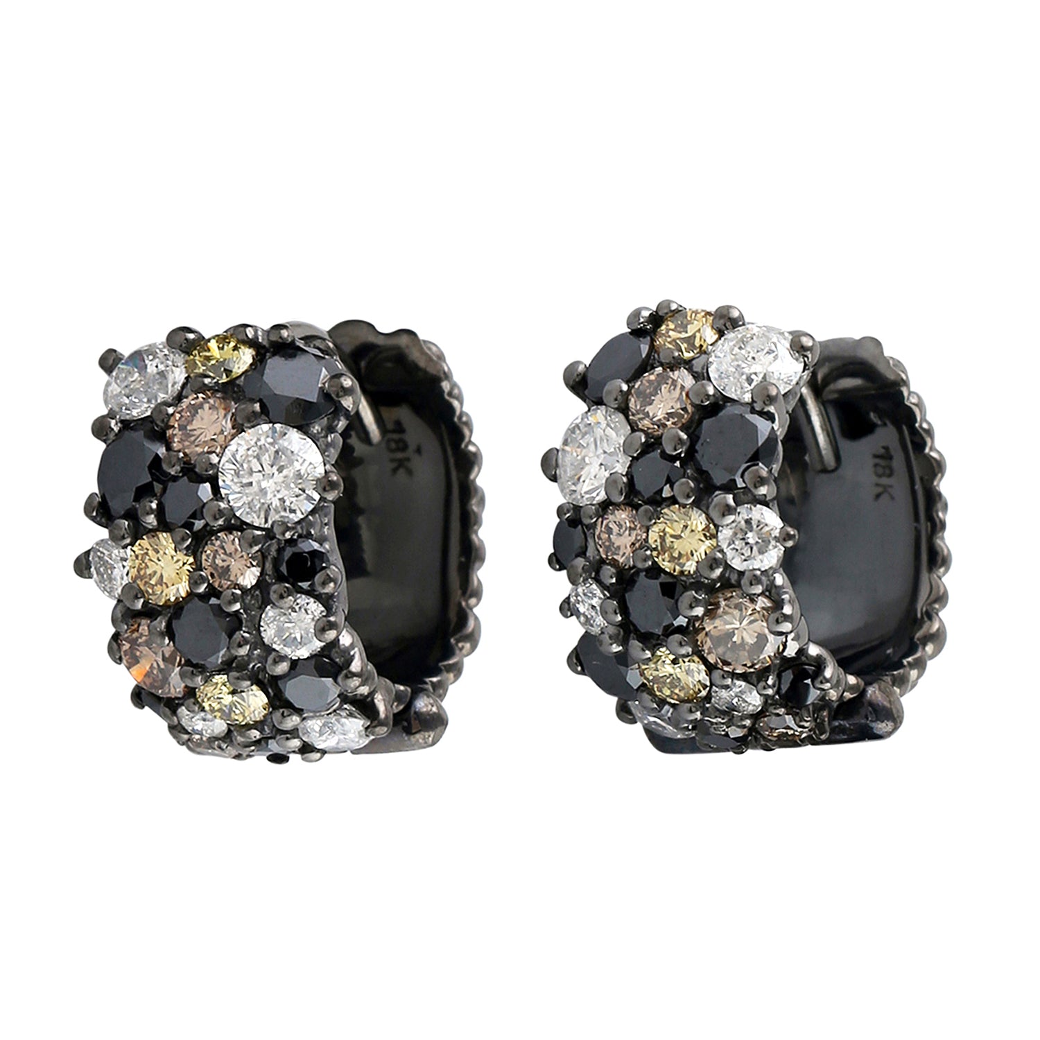 Multi-Color Diamond Cluster Huggie Earrings in 18K Rhodium Gold