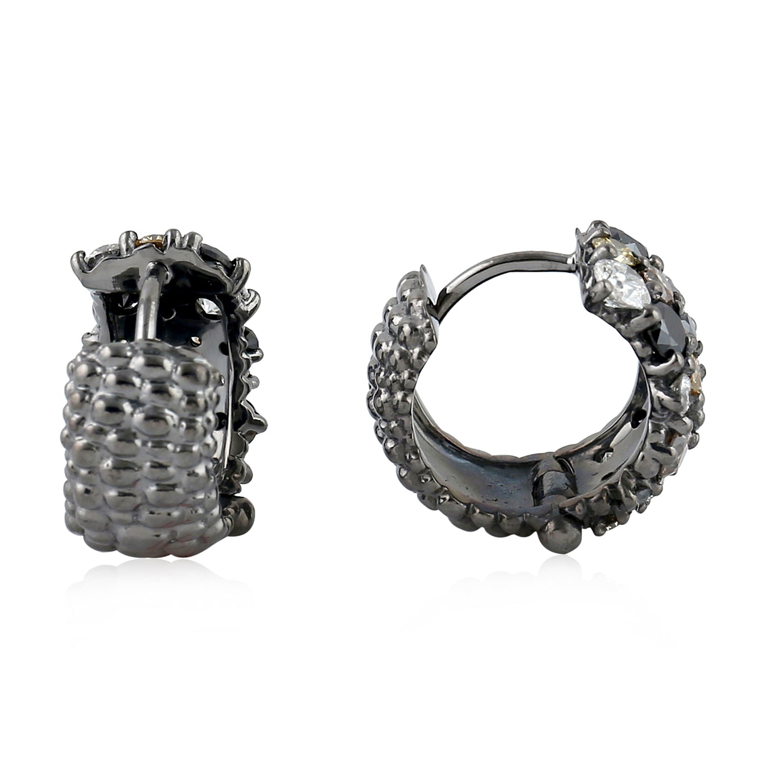 • Multi-Color Diamond Cluster Huggie Earrings in 18K Rhodium Gold