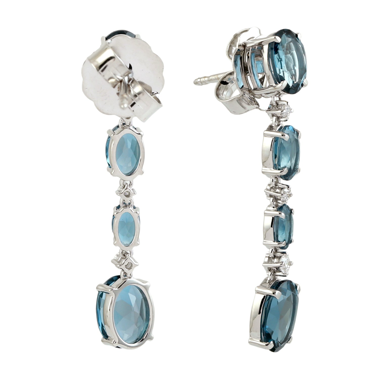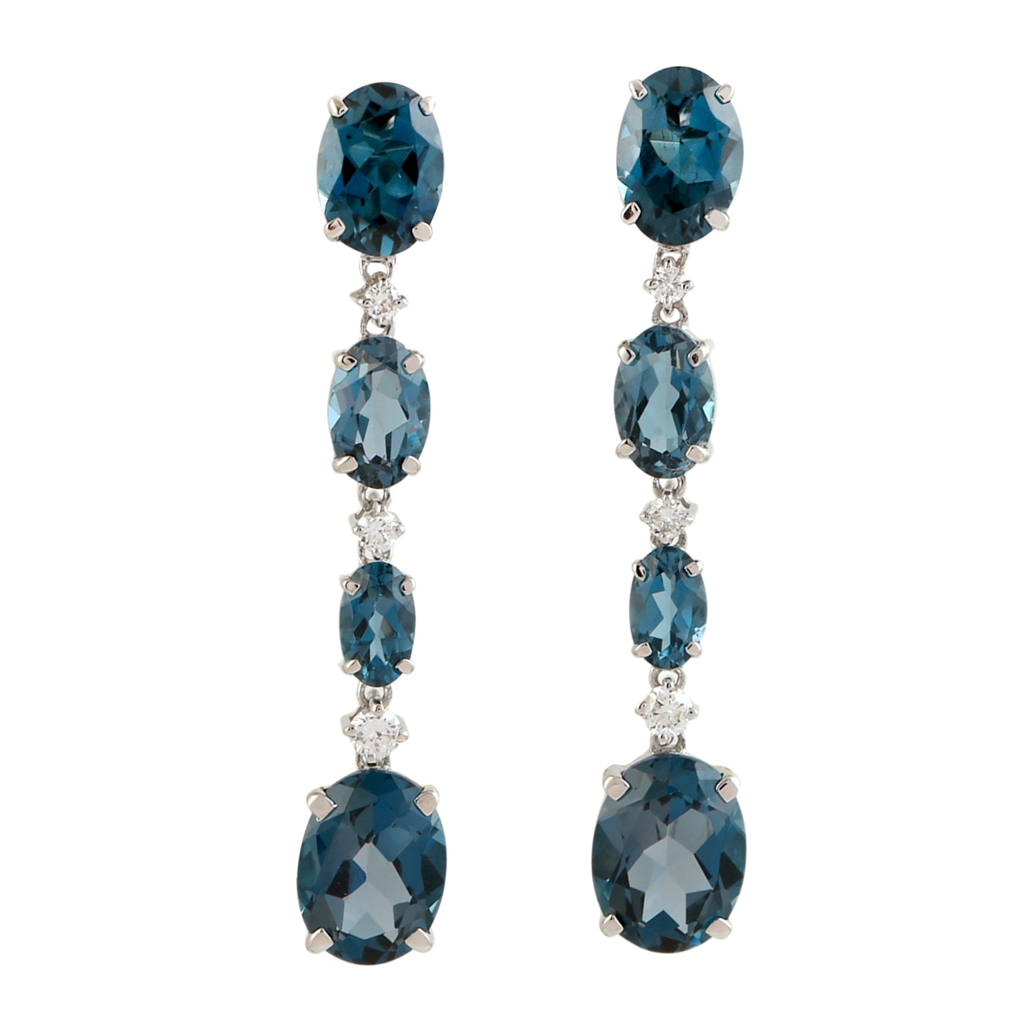 14K White Gold Oval Cut London Topaz Prong Diamond Designer Dangler Earrings