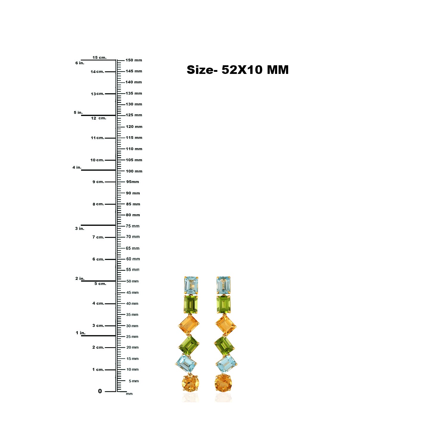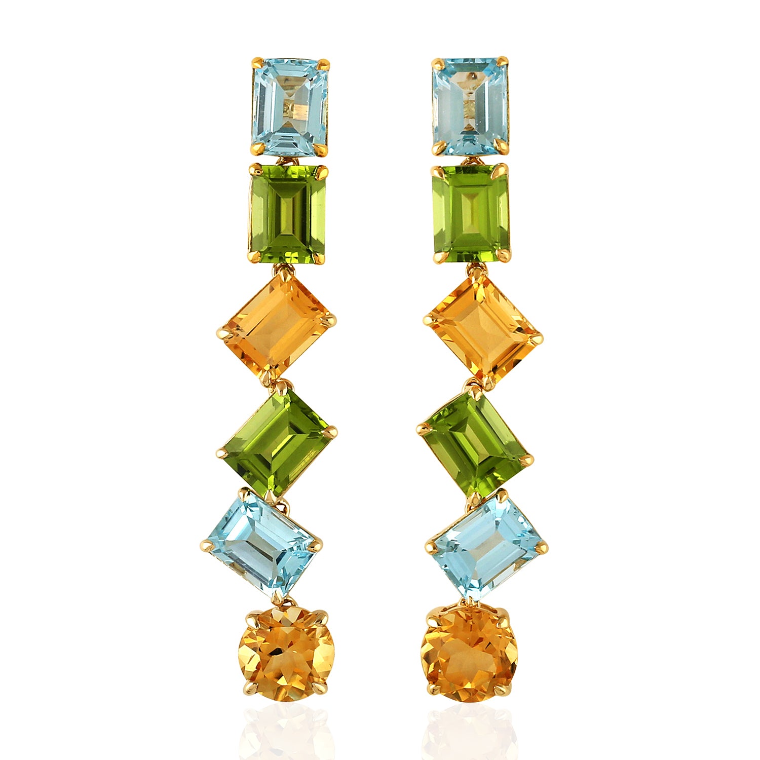 Baguette Cut Blue Topaz Peridot Citrine Gemstone Dangler In Yellow Gold