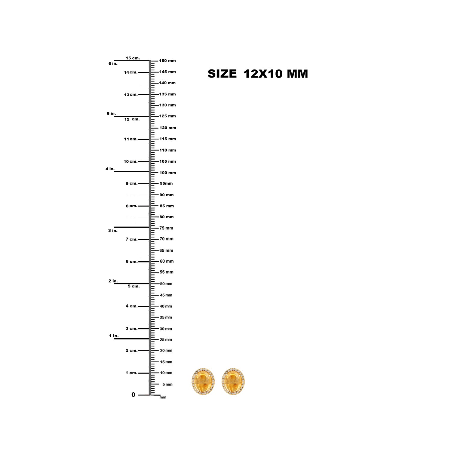 Oval Cut Citrine Gemstone Stud Earrings Pave Diamond In 14k Yellow Gold