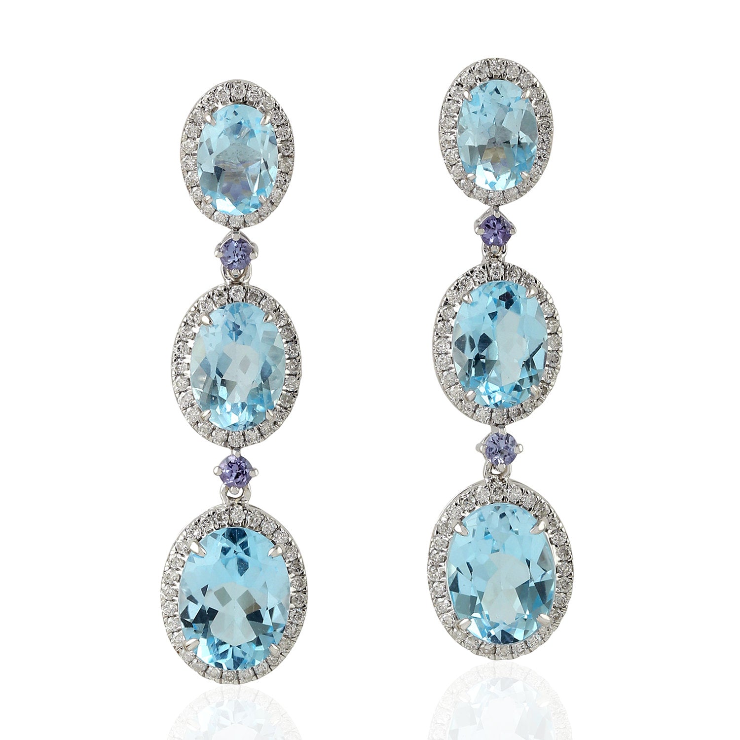 Oval Blue Topaz Prong Tanzanite Pave Diamond Beautiful Dangler In White Gold