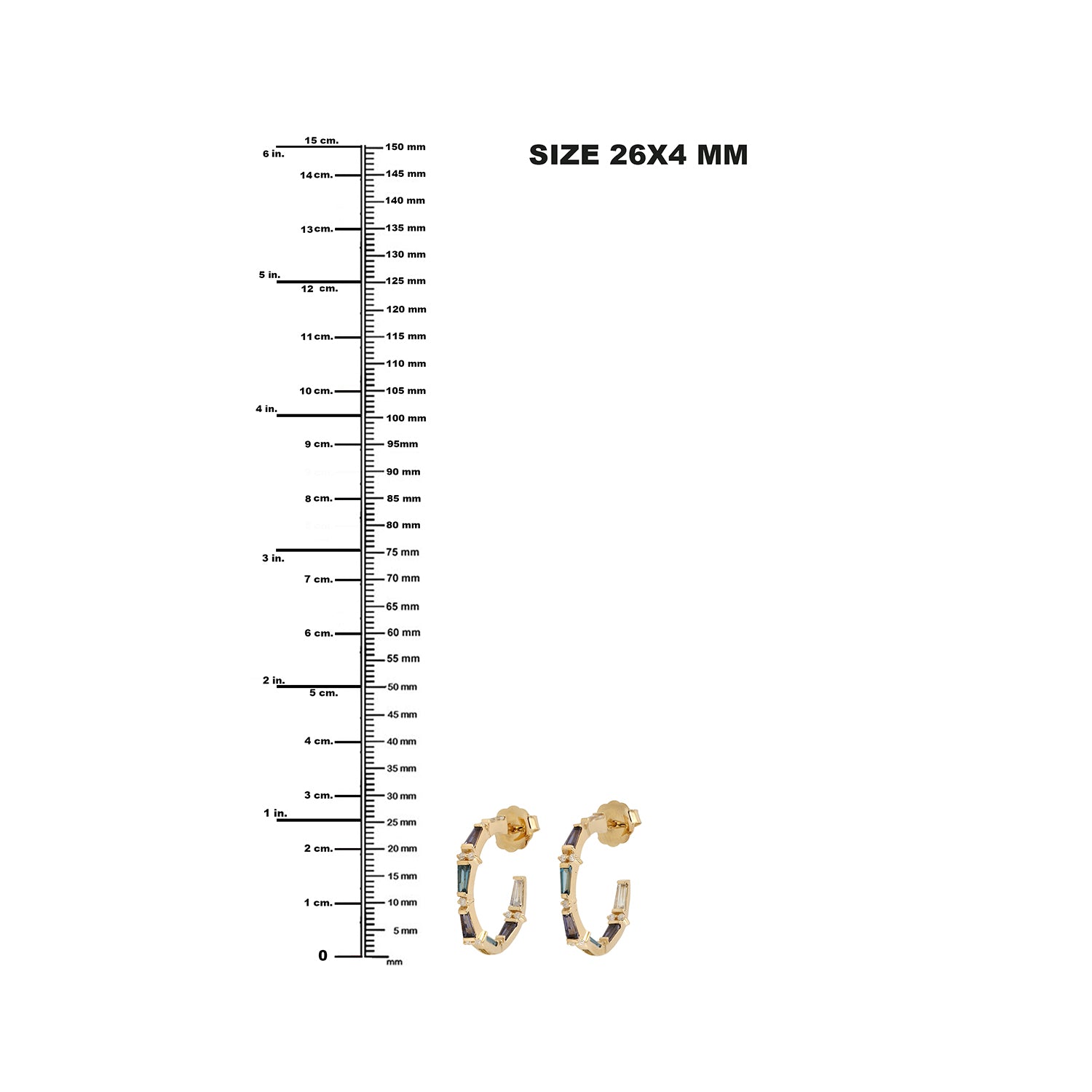 Tapered Baguette Topaz Multi Gemstone Pave Diamond Hoop Earrings In Gold