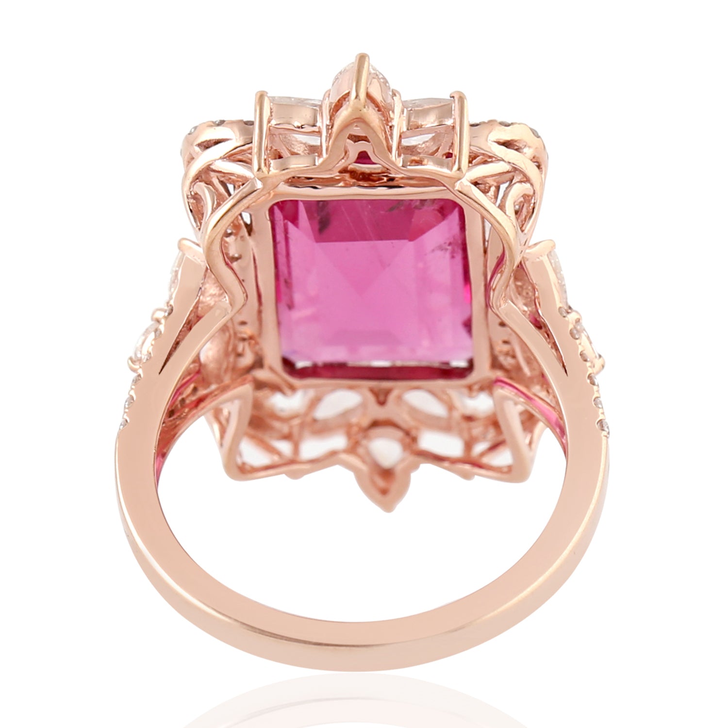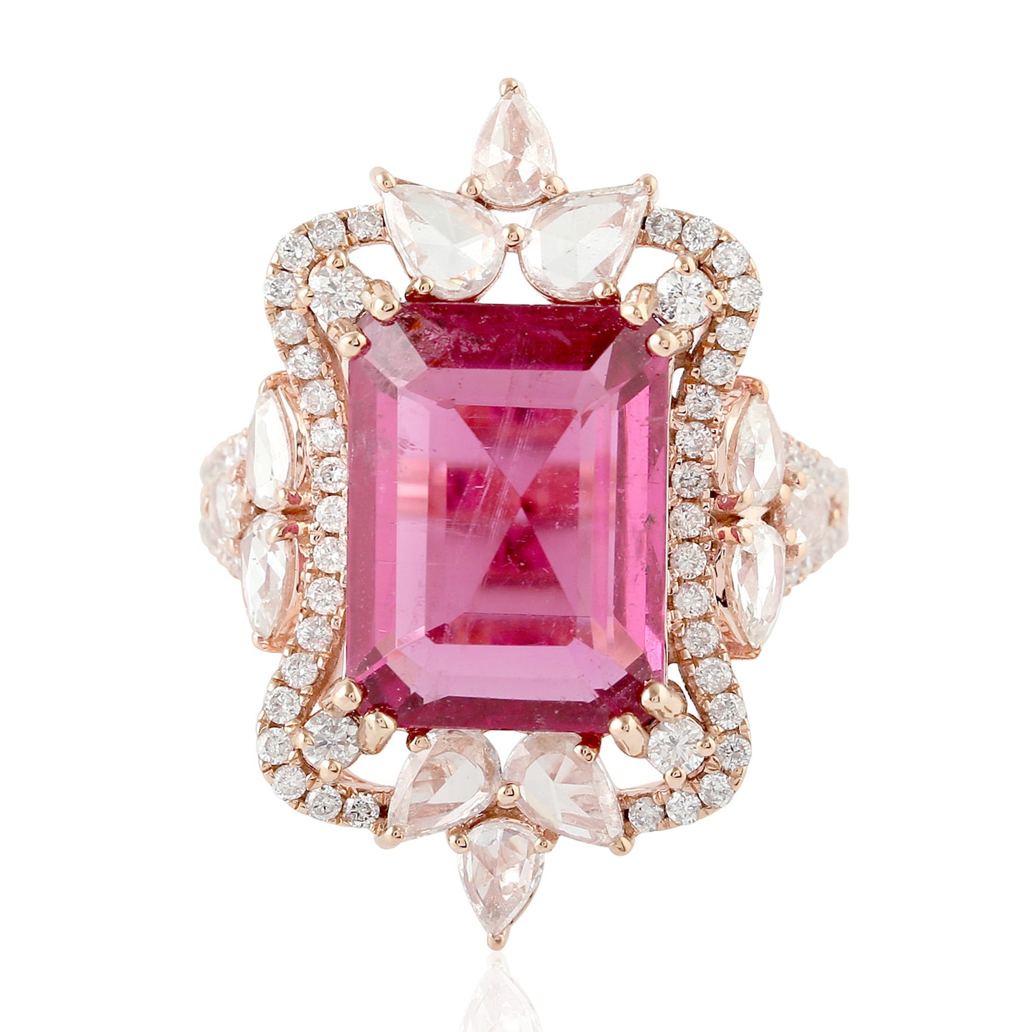 Pink Tourmaline Prong Rose Cut Diamond Cocktail Design In Rose Gold