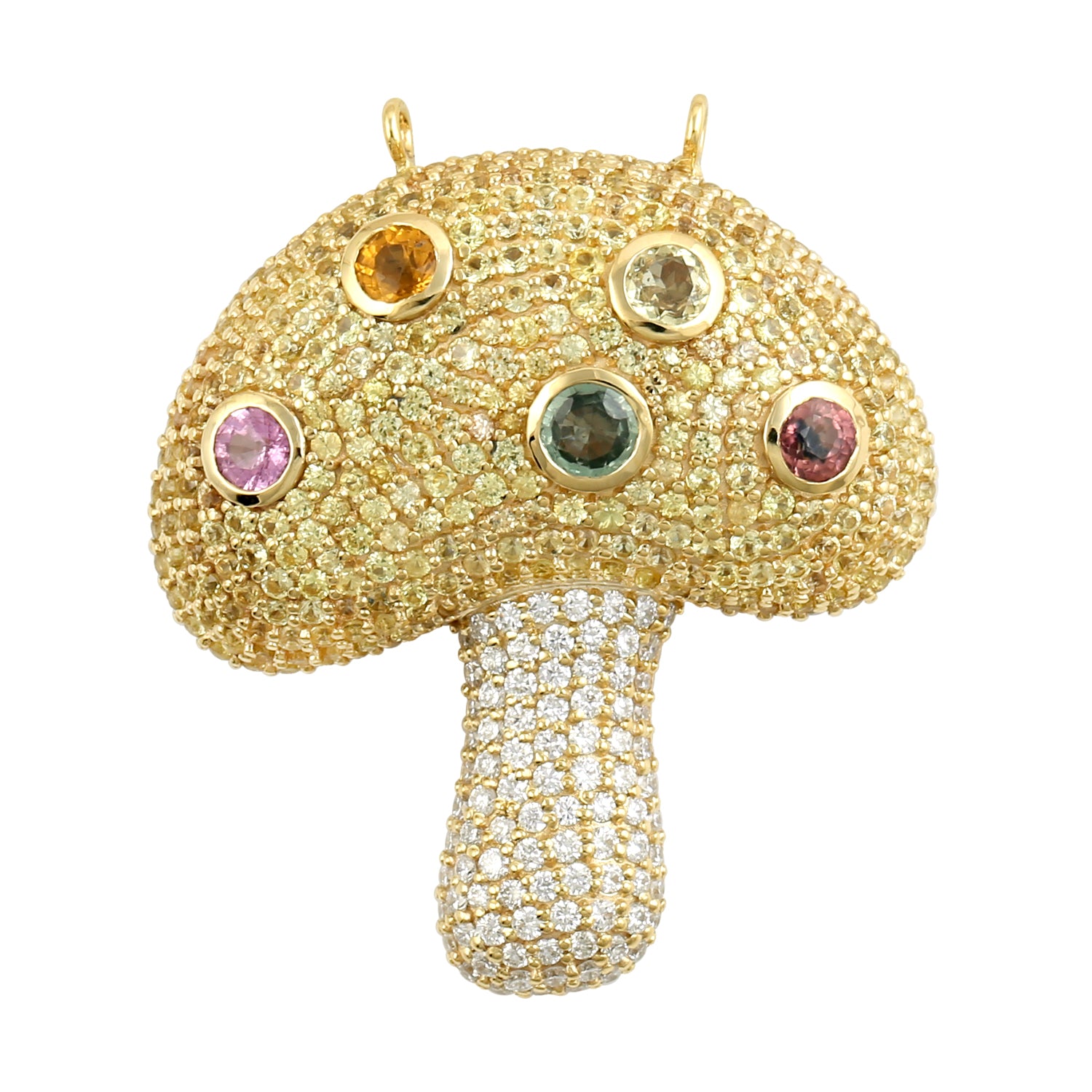 14k Yellow Gold Bezel Multi Sapphire Pave Diamond Mushroom Pendant For Gift