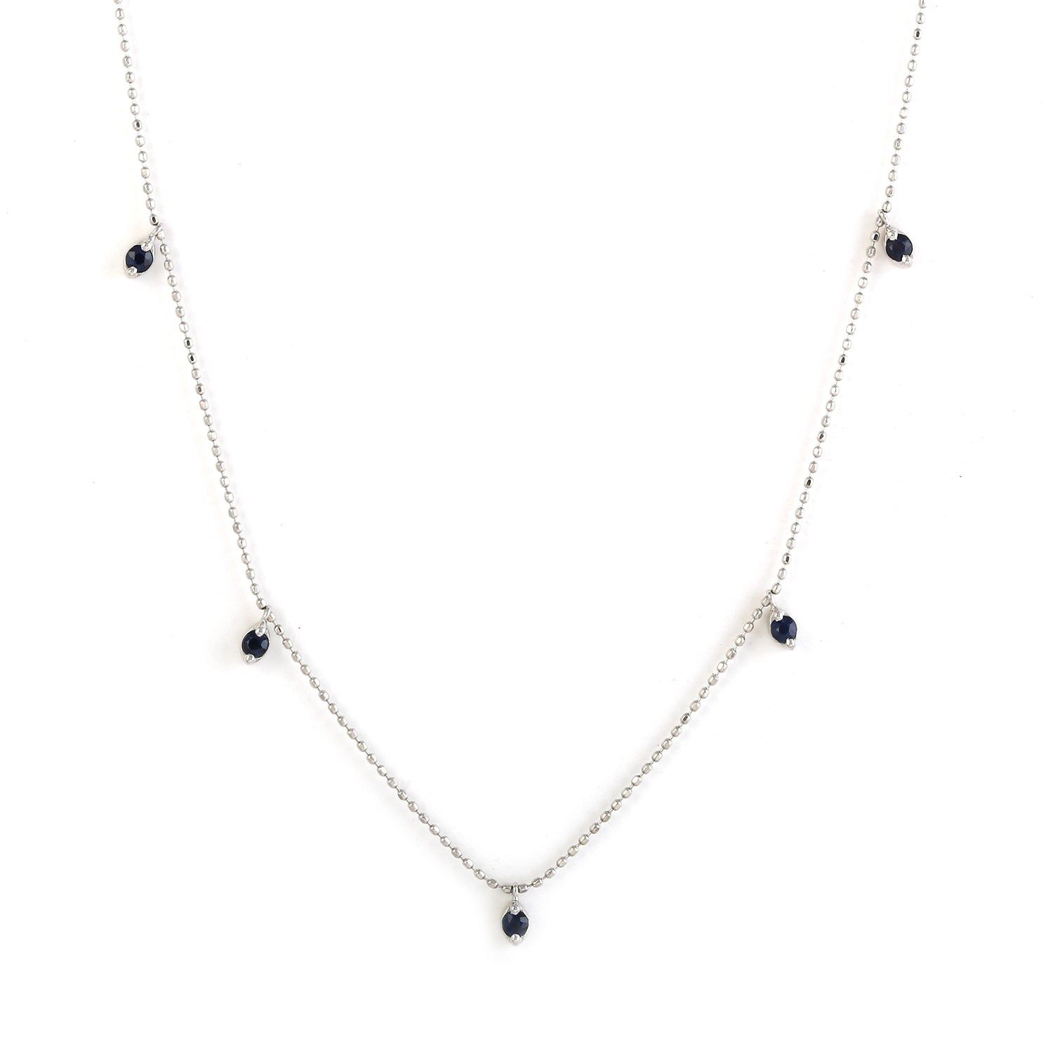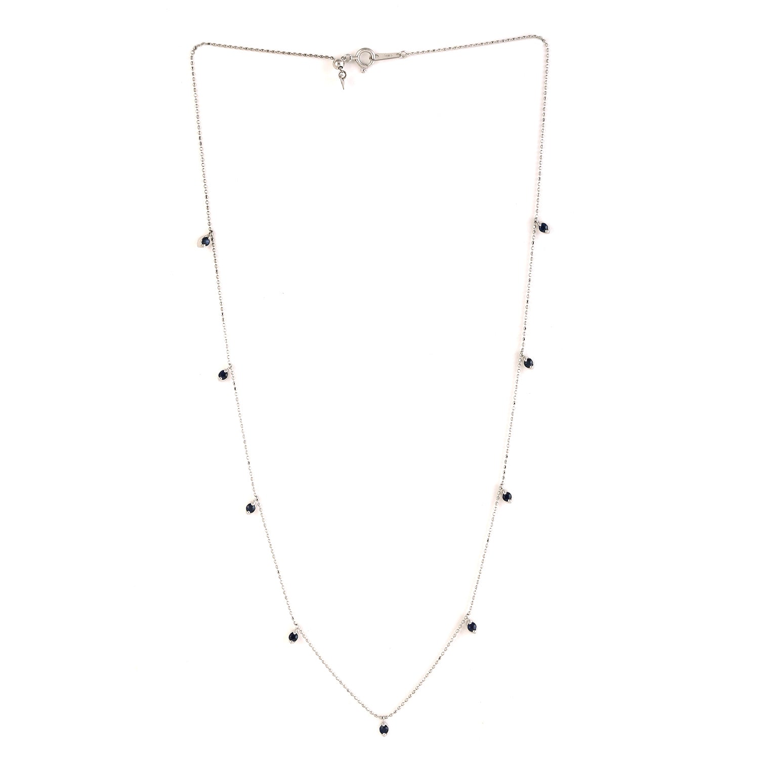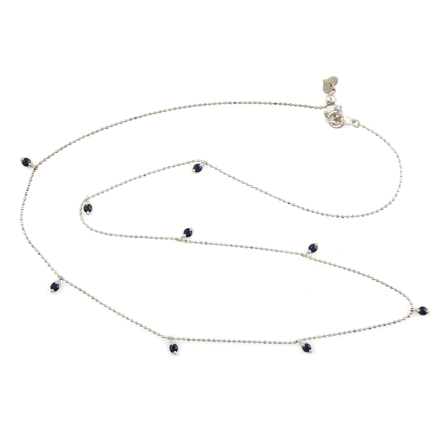 18K White Gold Prong Blue Sapphire Beads Chain Princess Necklace